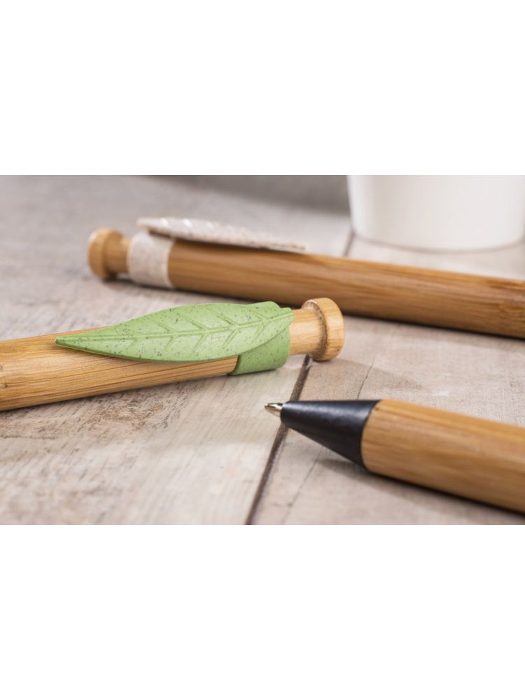Długopis FOLL został wykonany z myślą o wszystkich, którym bliska jest idea używania naturalnych surowców. Korpus tego długopisu wykonany jest z naturalnego bambusa, a klip i końcówki z tworzywa wykonanego w 40% z naturalnej słomy. Do idei ochrony środowiska nawiązuje też klip w kształcie liścia. Długopis automatyczny. Wkład typu X20 w kolorze niebieskim