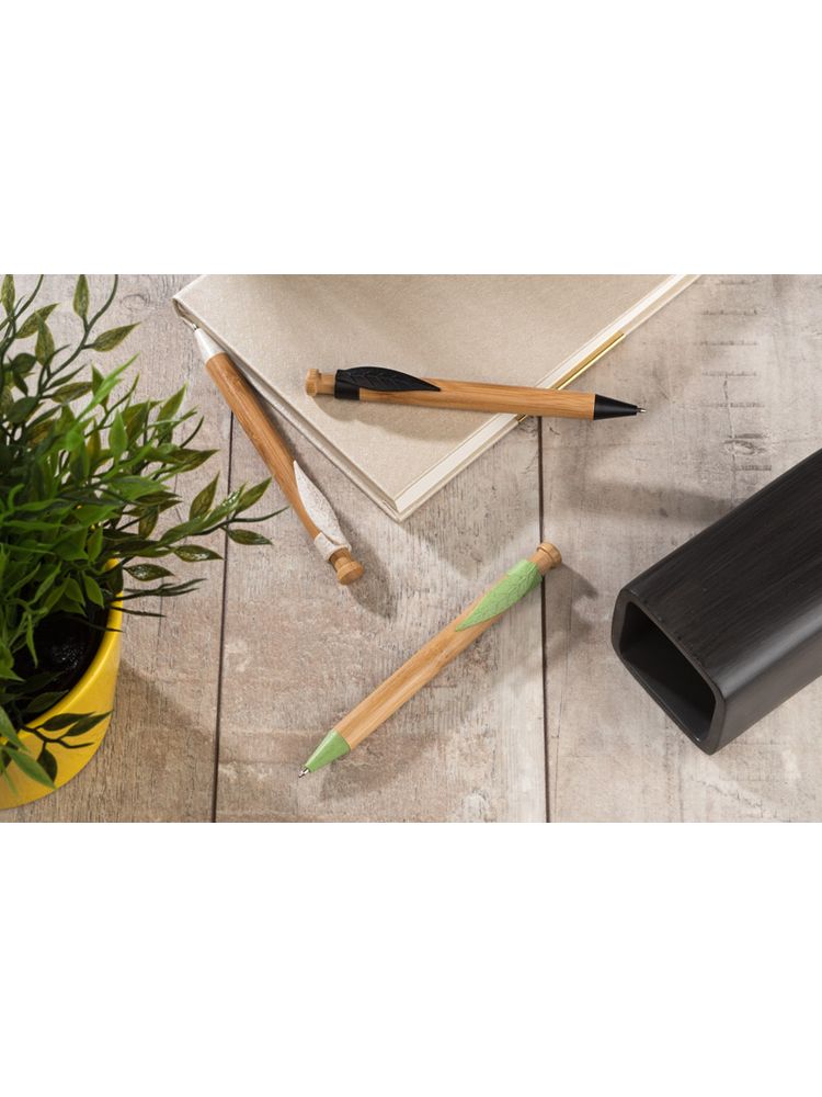 Długopis FOLL został wykonany z myślą o wszystkich, którym bliska jest idea używania naturalnych surowców. Korpus tego długopisu wykonany jest z naturalnego bambusa, a klip i końcówki z tworzywa wykonanego w 40% z naturalnej słomy. Do idei ochrony środowiska nawiązuje też klip w kształcie liścia. Długopis automatyczny. Wkład typu X20 w kolorze niebieskim