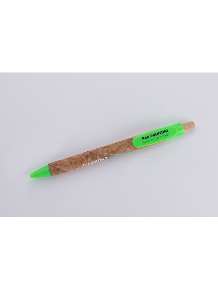 Długopis KORTE nawiązuje swoim wyglądem do idei recyclingu. Korpus został wykonany z naturalnego korka, a przycisk z drewna. Wykończenia z tworzywa sztucznego w żywych kolorach dodają mu uroku. Wkład w kolorze niebieskim.