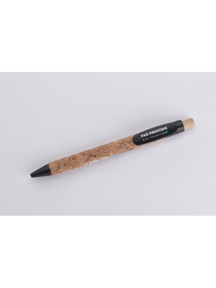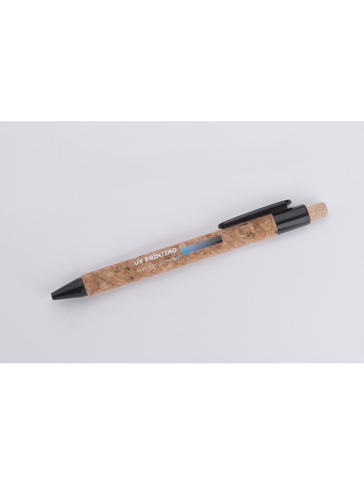 Długopis KORTE nawiązuje swoim wyglądem do idei recyclingu. Korpus został wykonany z naturalnego korka, a przycisk z drewna. Wykończenia z tworzywa sztucznego w żywych kolorach dodają mu uroku. Wkład w kolorze niebieskim.