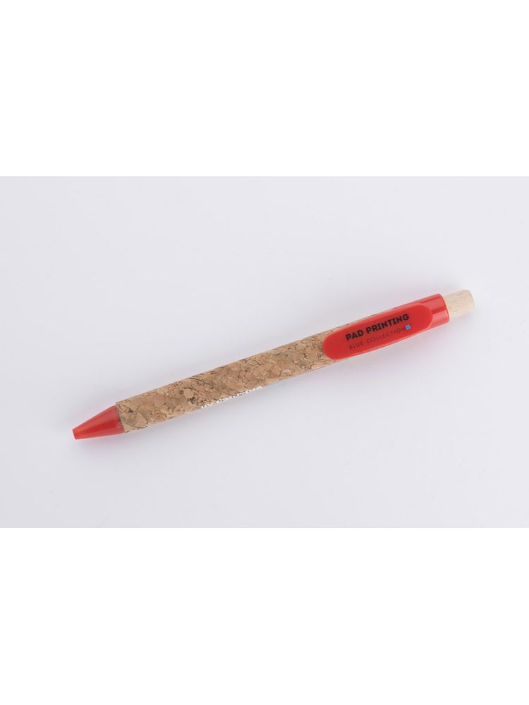 Długopis KORTE nawiązuje swoim wyglądem do idei recyclingu. Korpus został wykonany z naturalnego korka, a przycisk z drewna. Wykończenia z tworzywa sztucznego w żywych kolorach dodają mu uroku. Wkład w kolorze niebieskim.