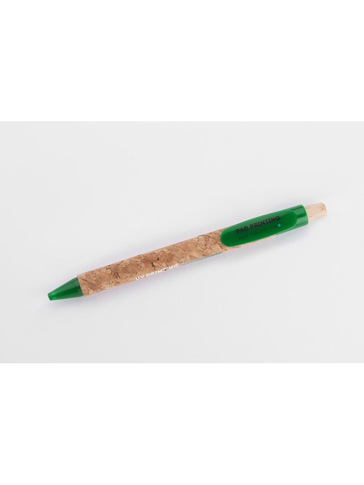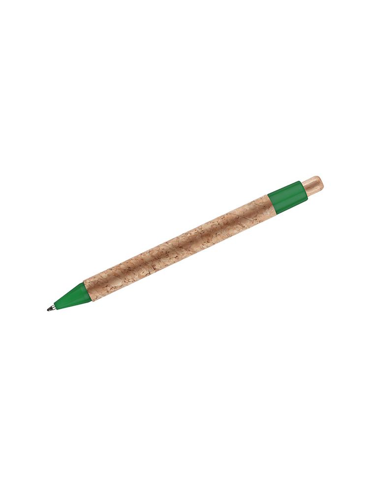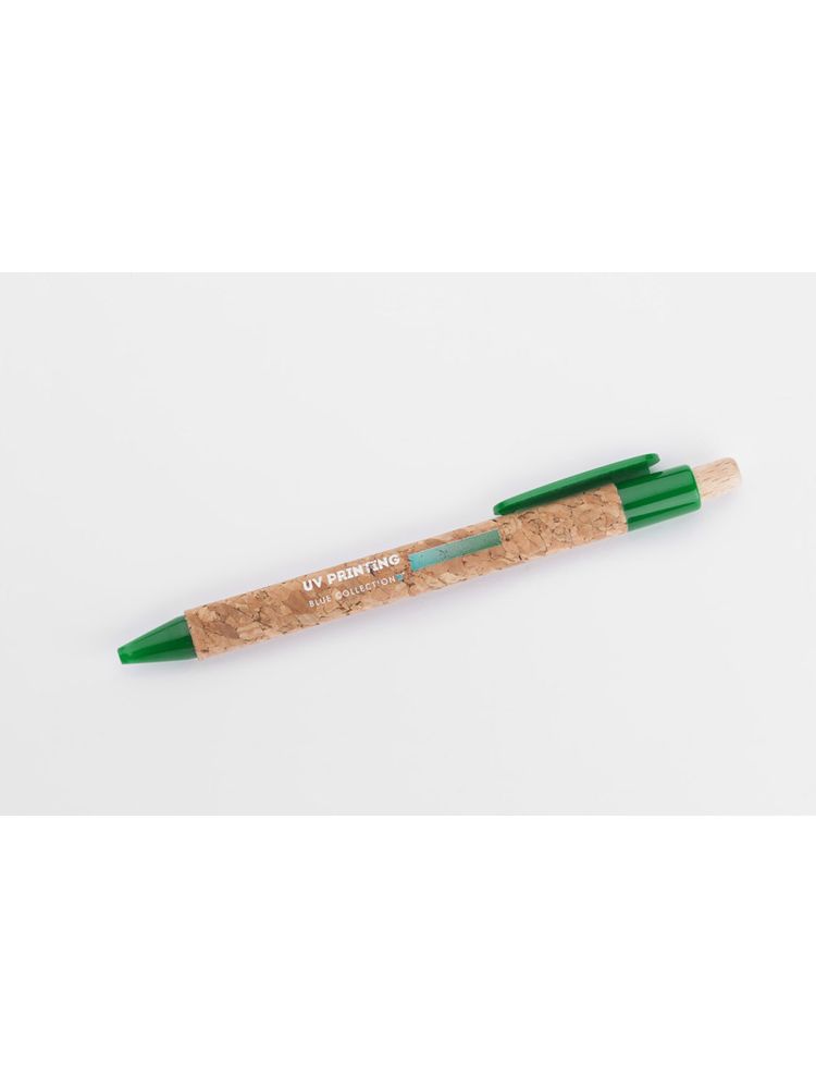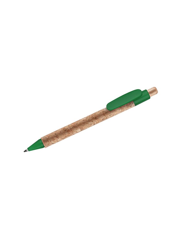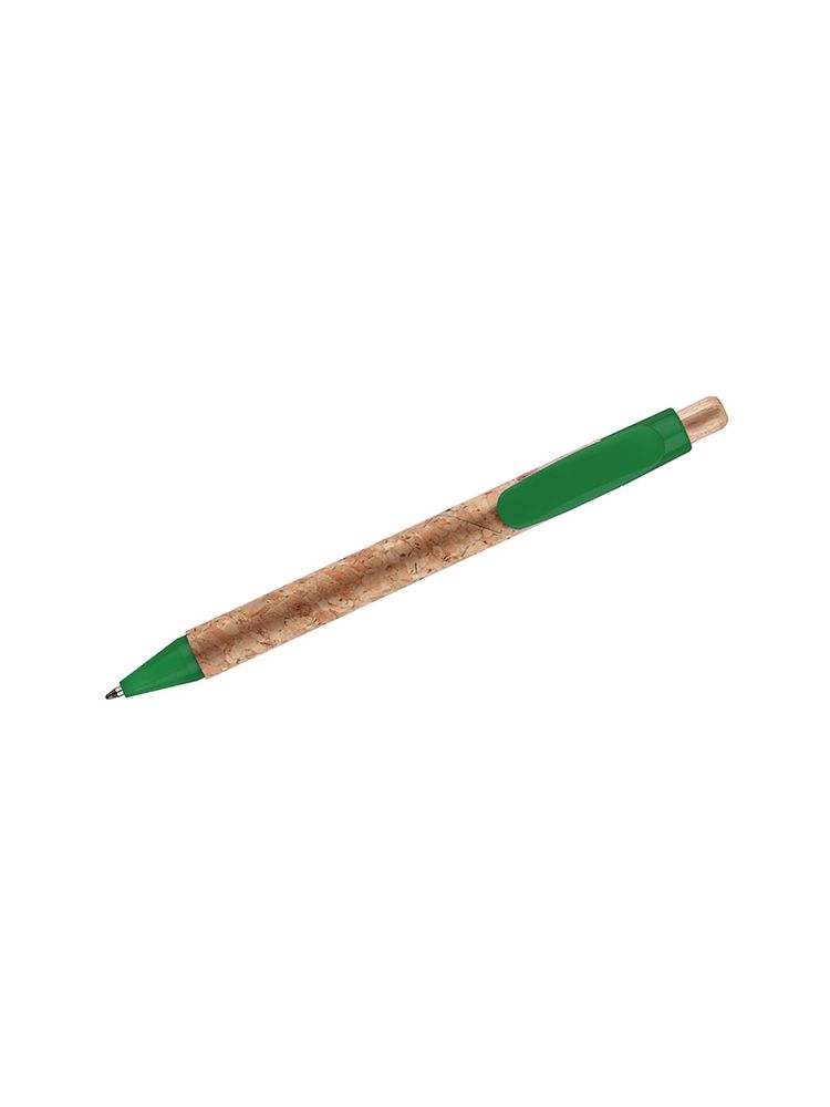 Długopis KORTE nawiązuje swoim wyglądem do idei recyclingu. Korpus został wykonany z naturalnego korka, a przycisk z drewna. Wykończenia z tworzywa sztucznego w żywych kolorach dodają mu uroku. Wkład w kolorze niebieskim.