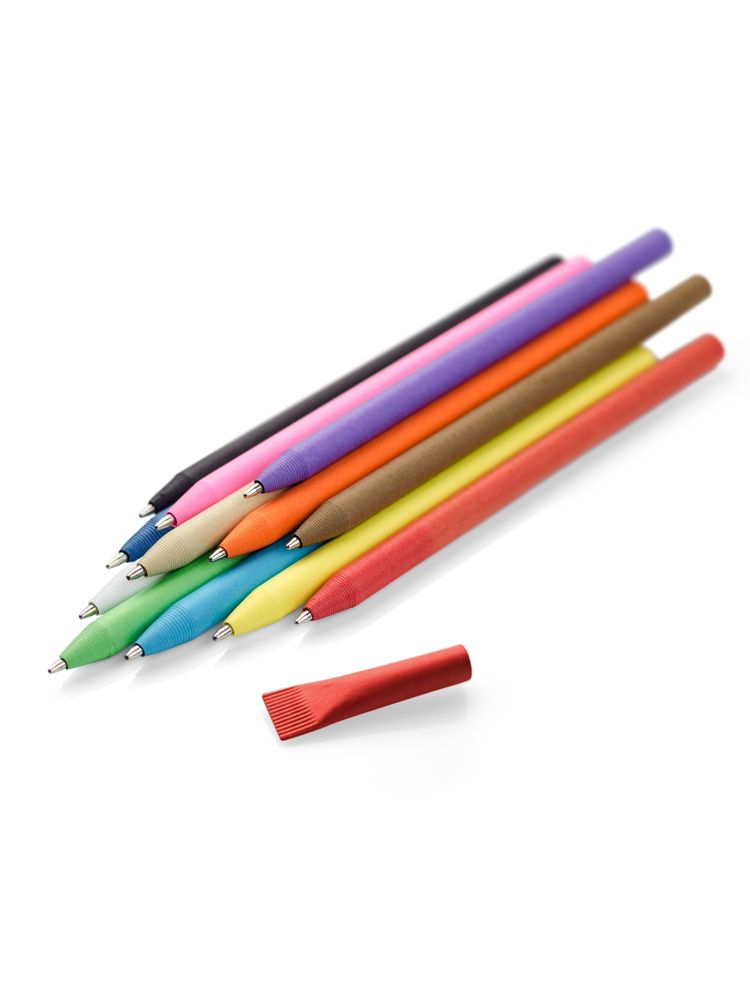 Ekologiczny długopis wykonany ze specjalnie zrolowanego papieru zamykany za pomocą papierowej zatyczki. Dostępny w szerokiej gamie kolorystycznej. Długopis z niebieskim wkładem.