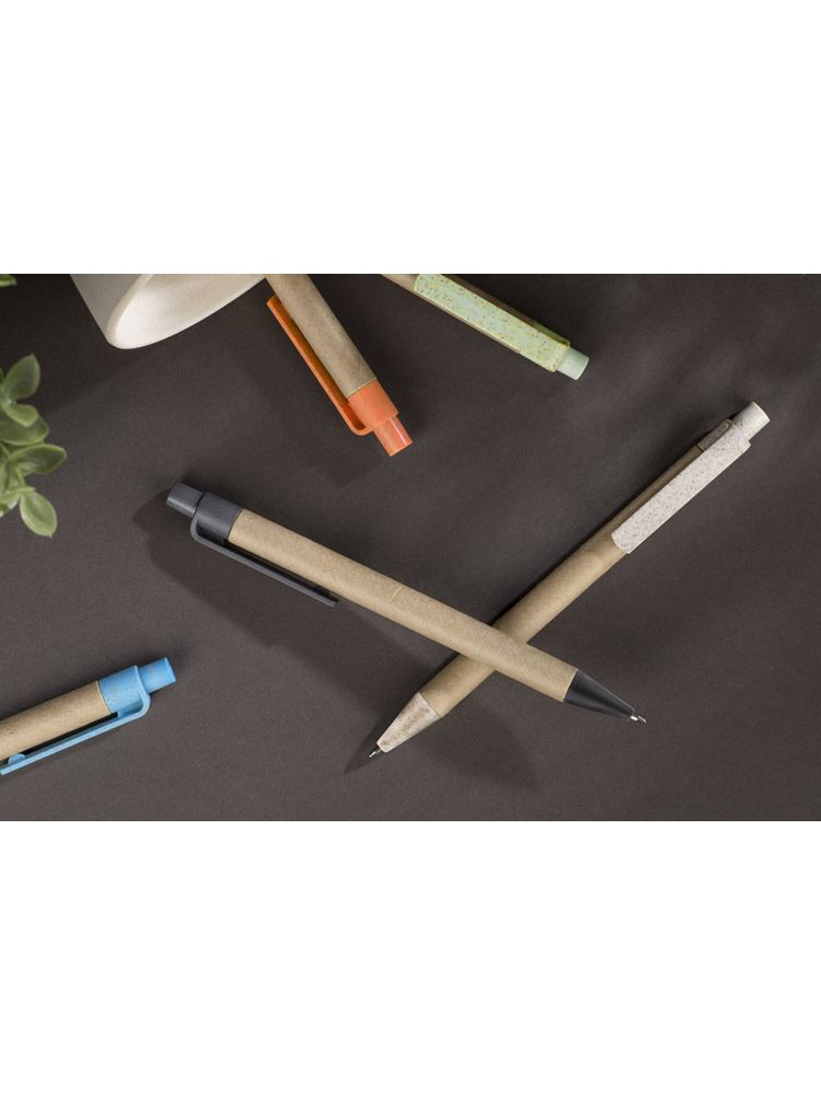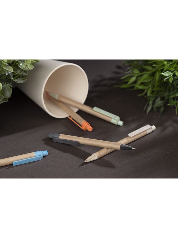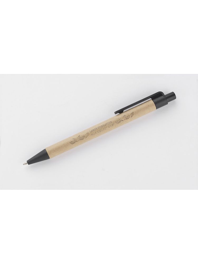 Długopis TIKO wykonany został z myślą o ponownym wykorzystaniu surowców. Jego korpus wykonany jest z papieru po recyklingu, a końcówki z tworzywa z domieszką słomy, która ogranicza ilość tworzywa sztucznego potrzebnego do produkcji. Prosty, ponadczasowy wzór. Długopis automatyczny. Wkład typu X20 w kolorze niebieskim.