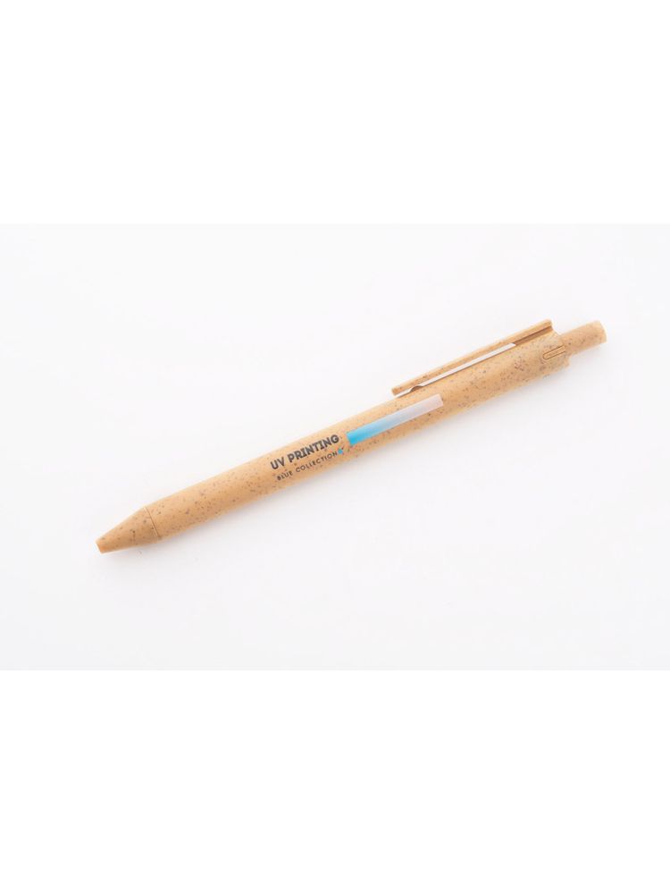 Długopis REVI został wykonany z myślą o wszystkich, którym bliska jest idea redukowania odpadów z tworzywa sztucznego. Tradycyjne tworzywo sztuczne zostało zastąpione specjalnym materiałem wykonanym w 40% z naturalnej słomy. Klasyczny, prosty kształt czyni go uniwersalnym gadżetem. Długopis automatyczny. Wkład typu X20 w kolorze niebieskim.
