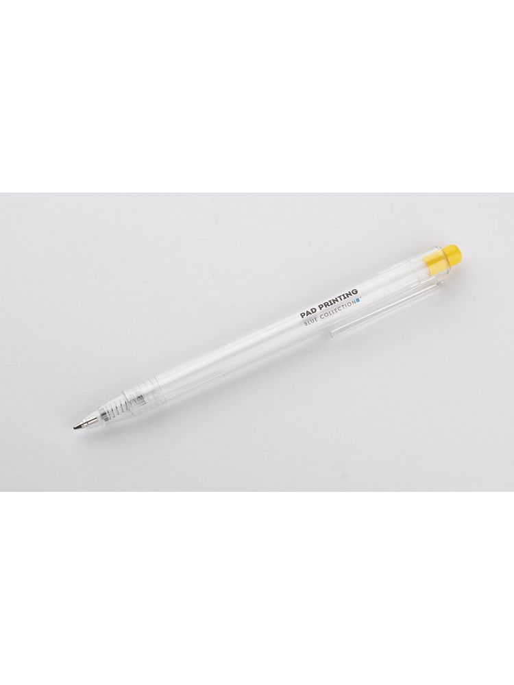 Długopis KLIIR powstał w całości z tworzywa PET po recyklingu (rPET). Ten prosty gadżet pokazuje nam, jak świadomie możemy gospodarować odpadami z tworzywa sztucznego i tworzyć z nich nowe przydatne przedmioty. Przezroczysty bezbarwny korpus długopisu ładnie połączony jest z przyciskiem w żywych kolorach. Długopis automatyczny, wkład typy G2 w kolorze niebieskim.