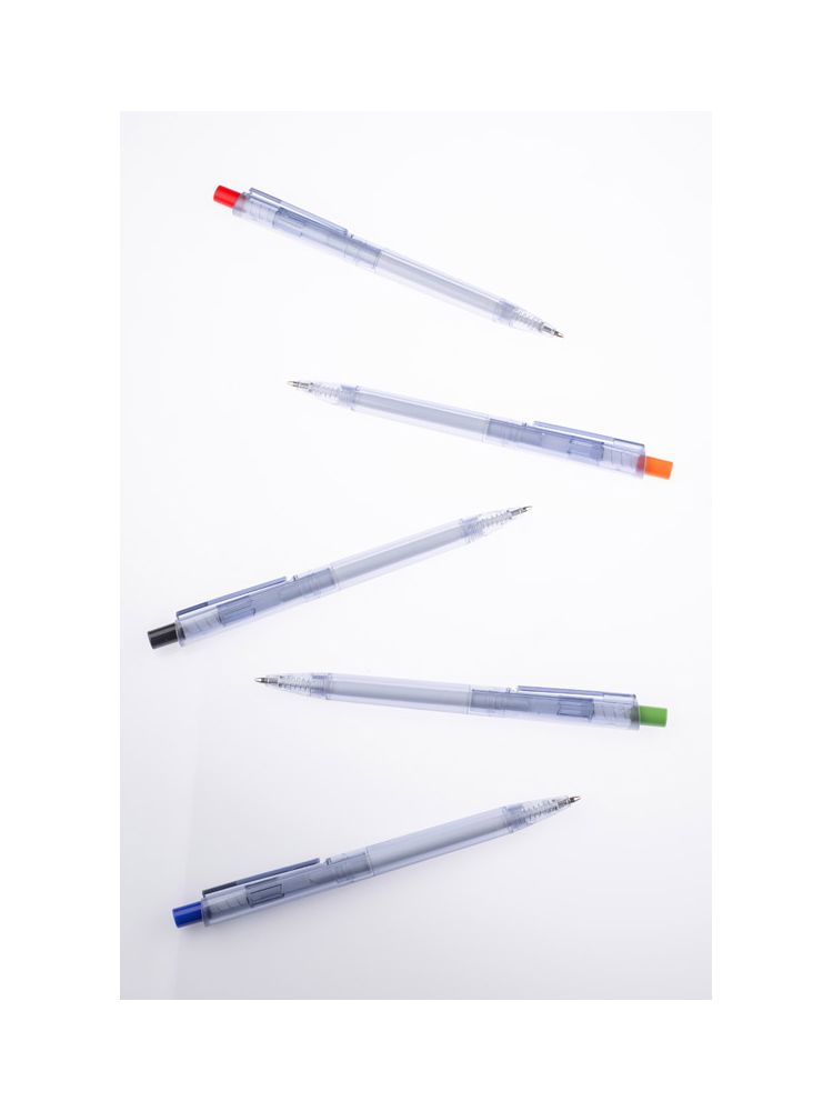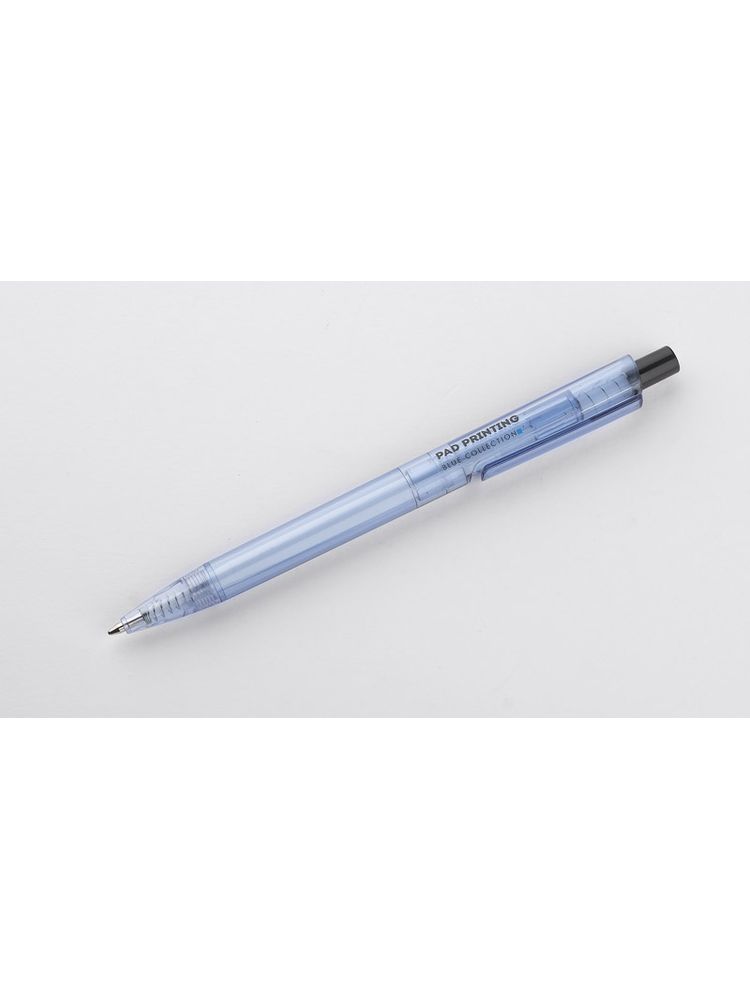 Długopis RECYKLO wytworzony w całości z tworzywa rPET (PET po recyklingu) jest odpowiedzią na poszukiwanie sposobów na zagospodarowanie odpadów z tworzywa sztucznego. Przezroczysty korpus w kolorze niebieskim przypomina wyglądem butelki do wody, z których został wyprodukowany. Długopis automatyczny, wkład typu G2 w kolorze niebieskim.