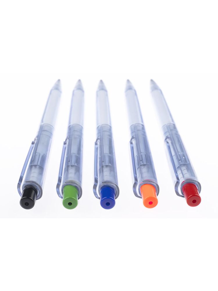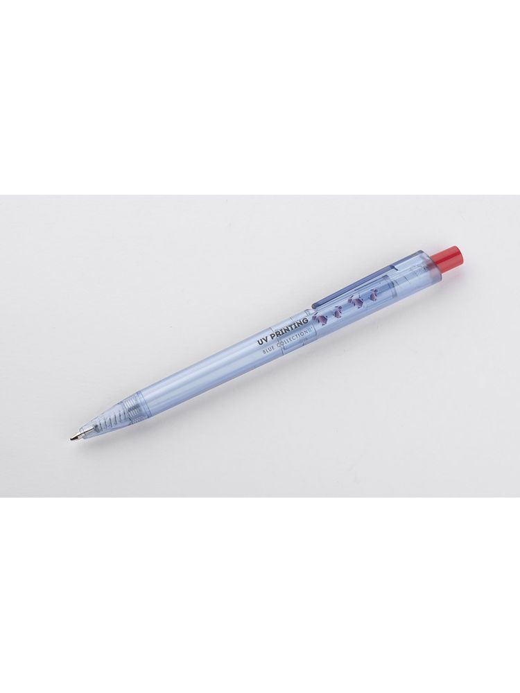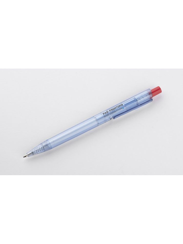 Długopis RECYKLO wytworzony w całości z tworzywa rPET (PET po recyklingu) jest odpowiedzią na poszukiwanie sposobów na zagospodarowanie odpadów z tworzywa sztucznego. Przezroczysty korpus w kolorze niebieskim przypomina wyglądem butelki do wody, z których został wyprodukowany. Długopis automatyczny, wkład typu G2 w kolorze niebieskim.