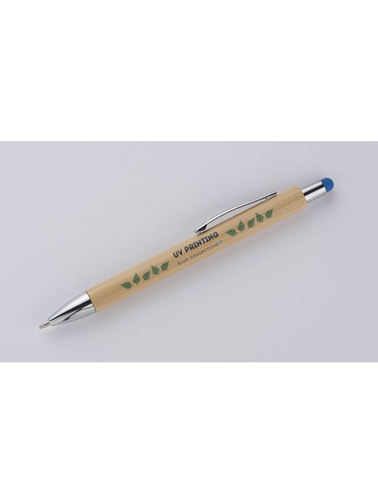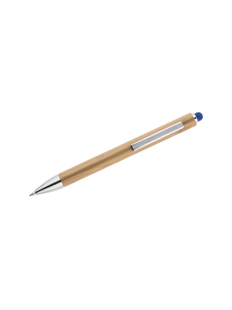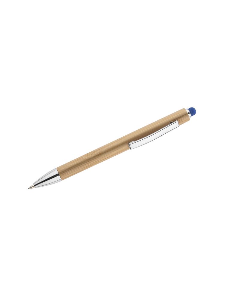 TUSO to długopis, którego korpus został w całości wykonany z bambusa. Chromowane wykończenia nadają mu elegancji. Kolorowa końcówka do obsługi ekranów dotykowych stanowi ciekawą ozdobę. Długopis automatyczny. Wkład typu G2 w kolorze niebieskim.