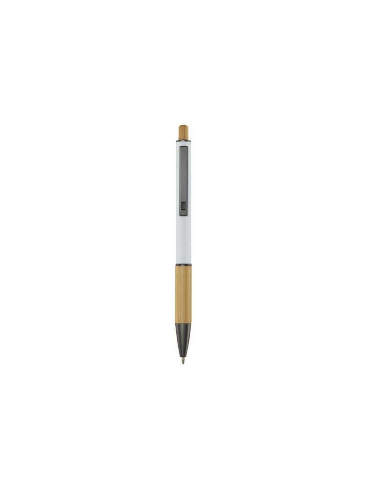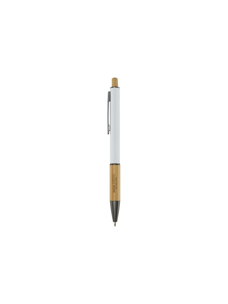 Darius długopis wykonany z aluminium pochodzącego z recyklingu, którego produkcja wymaga mniej energii niż w przypadku aluminium wyprodukowanego z surowców. Ogranicza również ilość odpadów na wysypiskach śmieci i pomaga chronić zasoby naturalne w celu zmniejszenia emisji gazów cieplarnianych. Przycisk i dolna część korpusu wykonane są z bambusa. Kolor tuszu: Czarny. Żywotność: 800 metrów. Rozmiar stalówki: 1,00 mm.