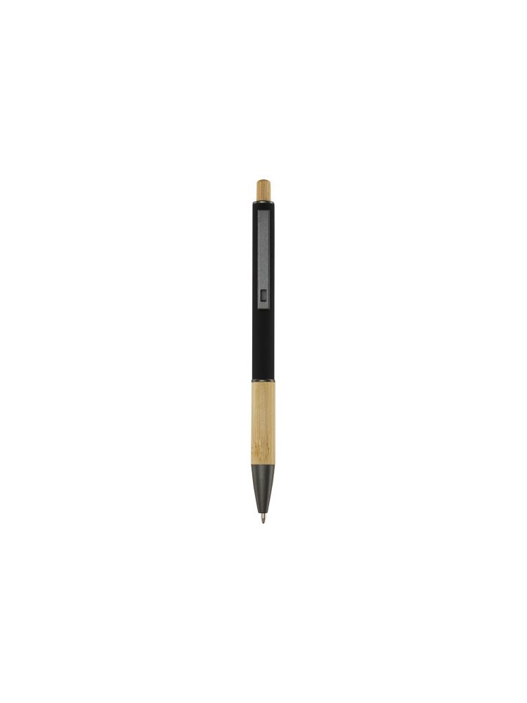 Darius długopis wykonany z aluminium pochodzącego z recyklingu, którego produkcja wymaga mniej energii niż w przypadku aluminium wyprodukowanego z surowców. Ogranicza również ilość odpadów na wysypiskach śmieci i pomaga chronić zasoby naturalne w celu zmniejszenia emisji gazów cieplarnianych. Przycisk i dolna część korpusu wykonane są z bambusa. Kolor tuszu: Czarny. Żywotność: 800 metrów. Rozmiar stalówki: 1,00 mm.