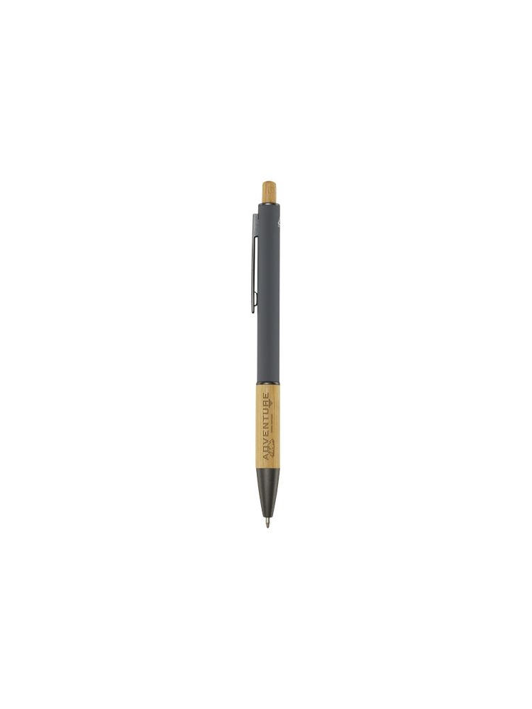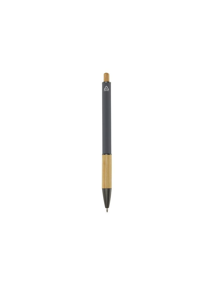 Darius długopis wykonany z aluminium pochodzącego z recyklingu, którego produkcja wymaga mniej energii niż w przypadku aluminium wyprodukowanego z surowców. Ogranicza również ilość odpadów na wysypiskach śmieci i pomaga chronić zasoby naturalne w celu zmniejszenia emisji gazów cieplarnianych. Przycisk i dolna część korpusu wykonane są z bambusa. Kolor tuszu: Czarny. Żywotność: 800 metrów. Rozmiar stalówki: 1,00 mm.