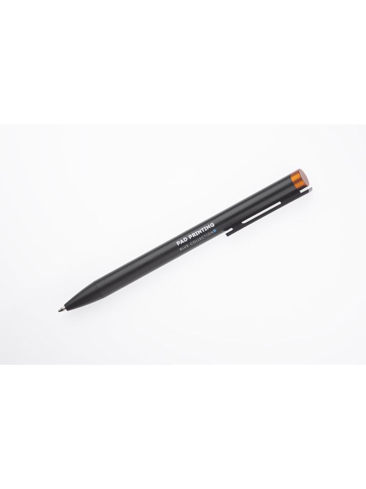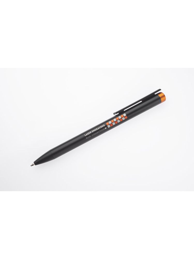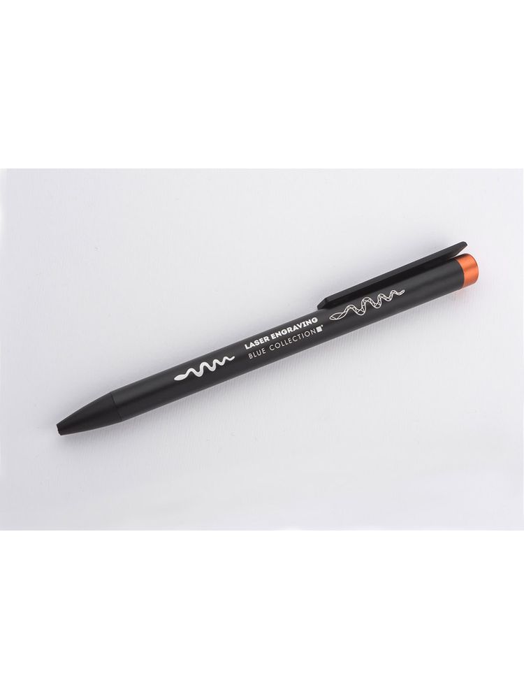 ALI to wyjątkowy długopis umożliwiający wykonanie znakowania w kolorze zbliżonym do końcówki długopisu oraz całkowicie zaskakującego grawerowania w dwóch kolorach – w kolorze zbliżonym do końcówki długopisu oraz białym (kolor aluminium). Czarny metalowy korpus oraz czarne wykończenia stanowią idealne tło dla kolorowego grawerowania. Długopis automatyczny. Wkład typu X20 o grubości 1.0 mm w kolorze niebieskim.