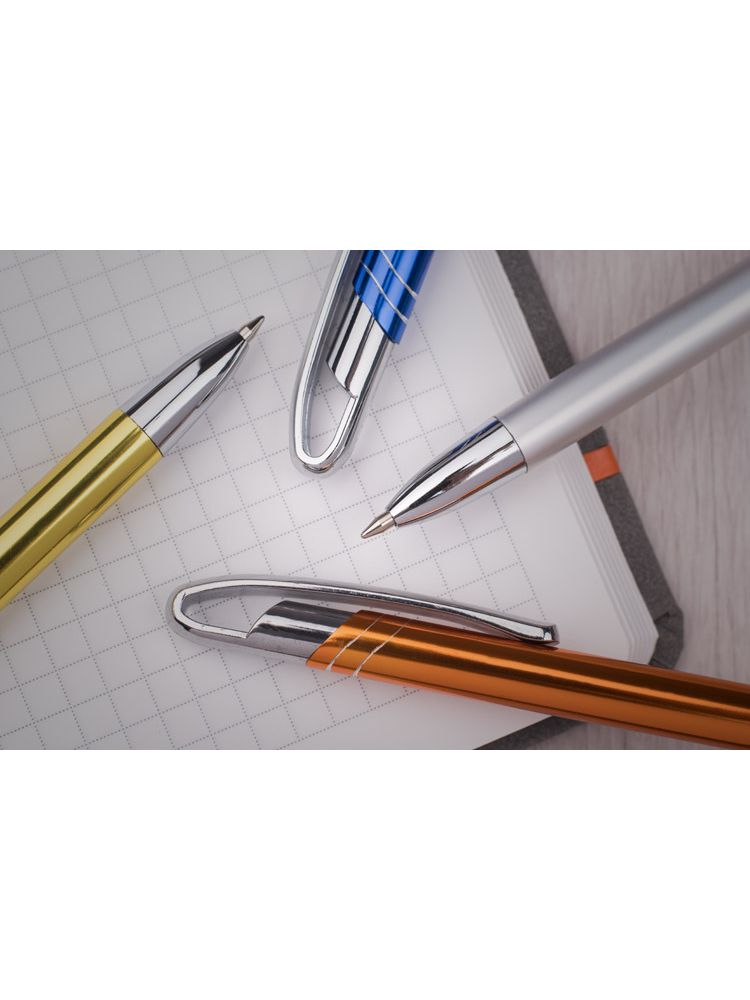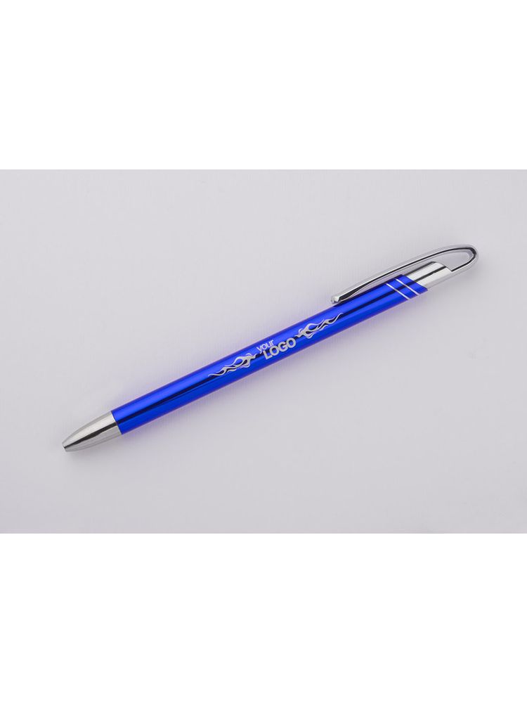 Cienki i zgrabny metalowy długopis w kolorze o metalicznym wykończeniu. Klip i końcówki w kolorze srebrnym chromowanym. AVALO wyróżnia się wśród podobnych długopisów oryginalnym projektem klipu. Korpus ozdobiony został dwoma skośnymi paskami w kolorze srebrnym. Wkład o grubości 0,7 mm w kolorze niebieskim.