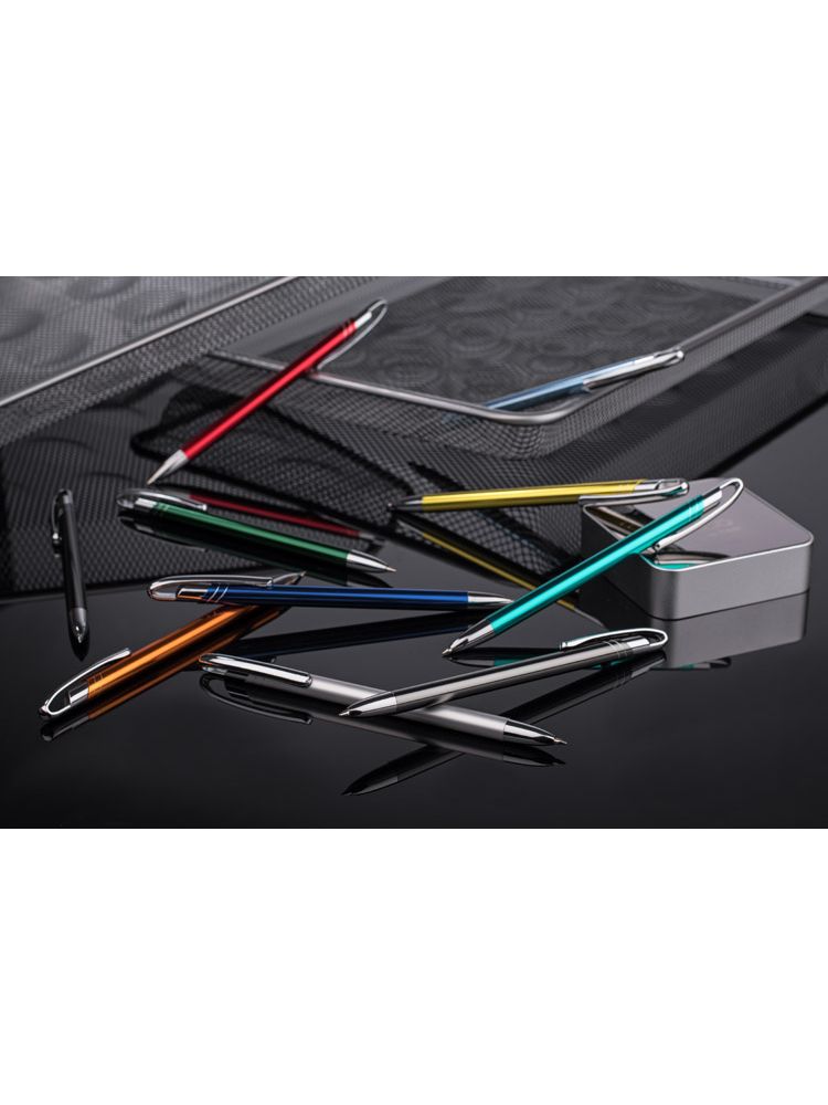 Cienki i zgrabny metalowy długopis w kolorze o metalicznym wykończeniu. Klip i końcówki w kolorze srebrnym chromowanym. AVALO wyróżnia się wśród podobnych długopisów oryginalnym projektem klipu. Korpus ozdobiony został dwoma skośnymi paskami w kolorze srebrnym. Wkład o grubości 0,7 mm w kolorze niebieskim.