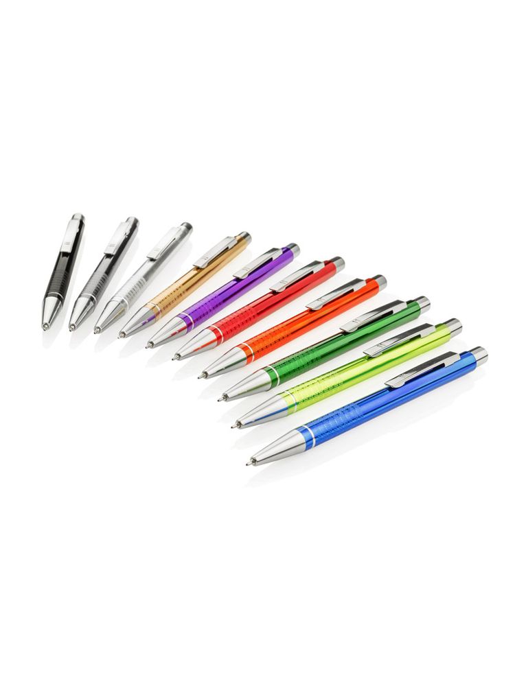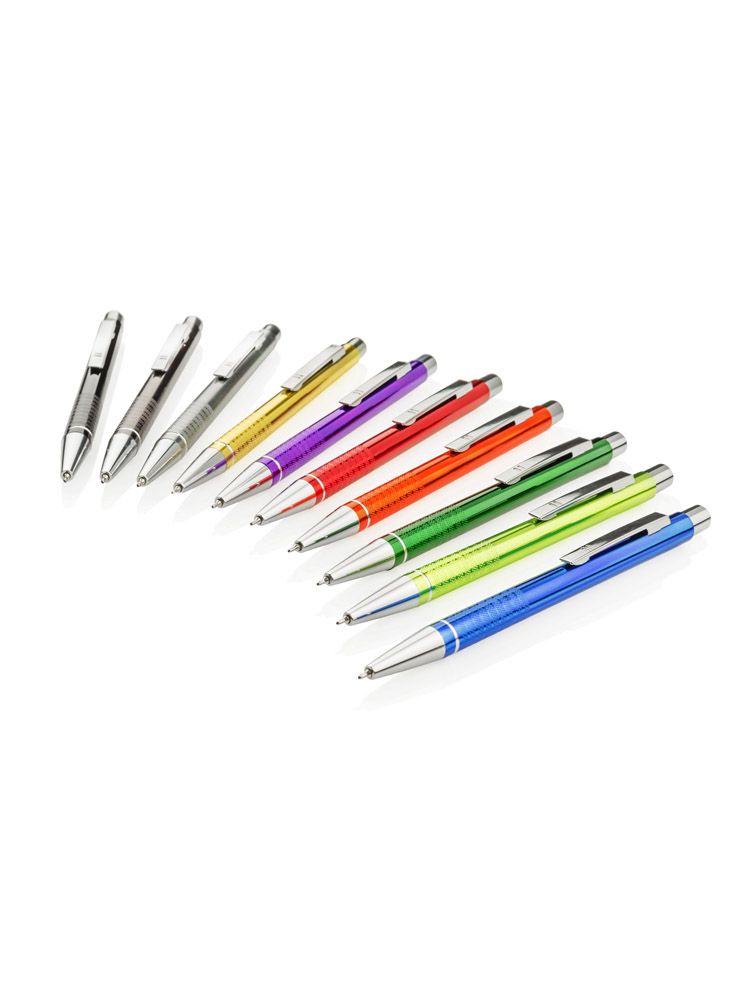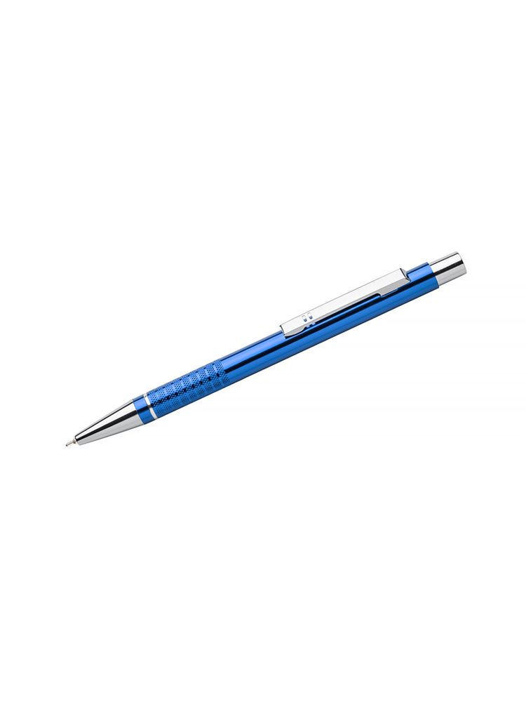 Długopis BONITO to klasyczny elegancki długopis metalowy o metalicznych kolorach z chromowanymi wykończeniami. Wykonany z aluminium. Korpus ozdobiony srebrnym ringiem na dole oraz paskami o delikatnie chropowatej strukturze. Nowy typ wkładu z tuszem półżelowym o grubości pisania 0,7 mm. Wkład w kolorze niebieskim.