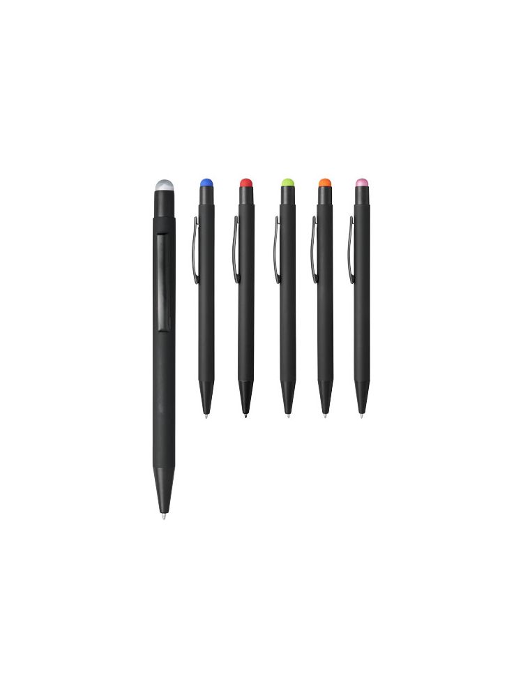 Gumowany długopis automatyczny z rysikiem. Kolor końcówki rysika pasuje do laserowo wygrawerowanej warstwy spodniej długopisu. Długopis posiada metalowy klips, gumowy rysik i jest wykonane z aluminium. Żywotność: 450 m.