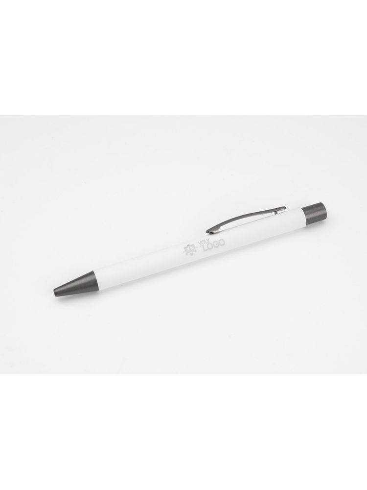 Długopis GOMA to prosty design połączony z przyjemną w dotyku gumowaną powierzchnią. Całość jest utrzymana w lekkich, matowych barwach. Wykonany z aluminium. Wykończenia w kolorze grafitowym. Wkład w kolorze czarnym.