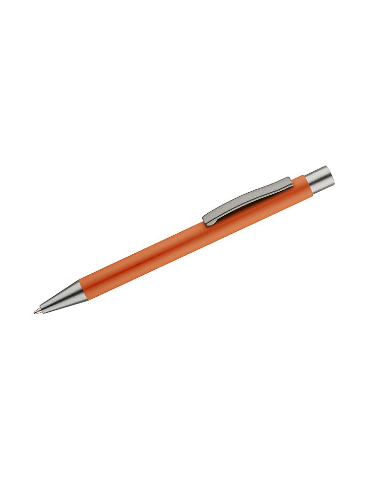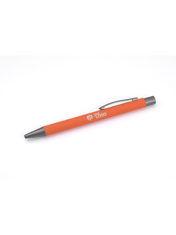 Długopis GOMA to prosty design połączony z przyjemną w dotyku gumowaną powierzchnią. Całość jest utrzymana w lekkich, matowych barwach. Wykonany z aluminium. Wykończenia w kolorze grafitowym. Wkład w kolorze czarnym.