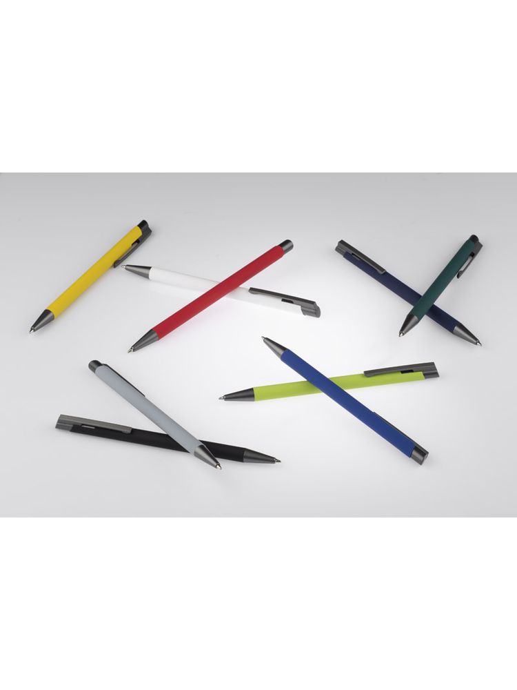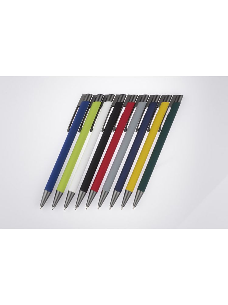 Długopis OPTIMA łączy w sobie elegancję i prostotę. Smukły korpus wykonany został z aluminium i pokryty gumowaną farbą, która tworzy przyjemną w dotyku powłokę. Długopis automatyczny. Wykończenia w kolorze grafitowym. Wkład w kolorze niebieskim.