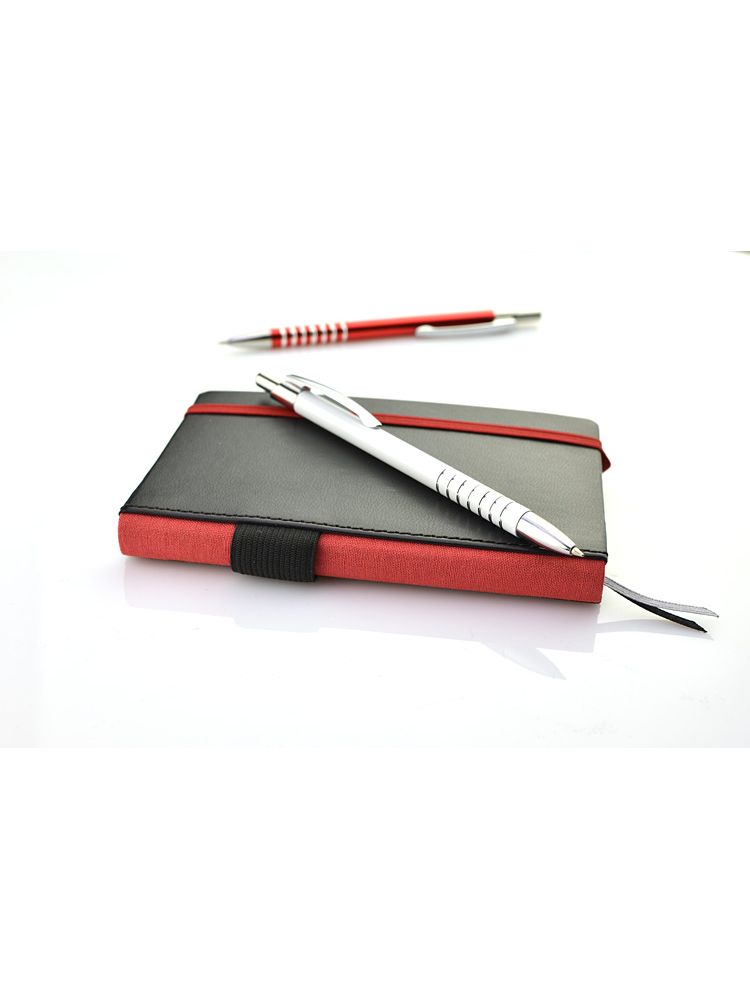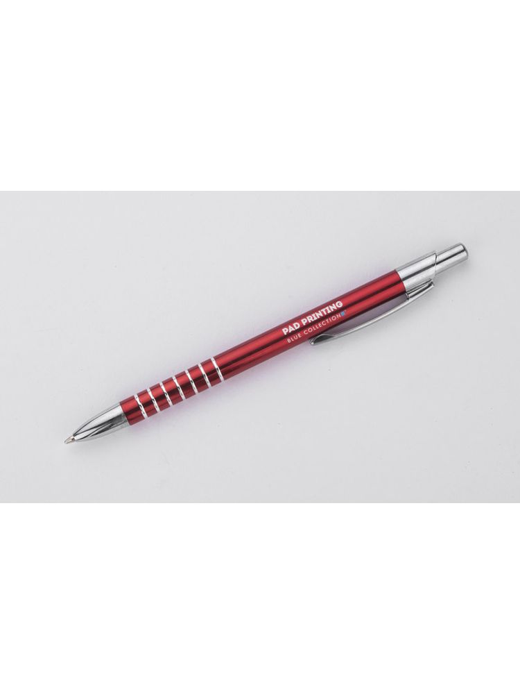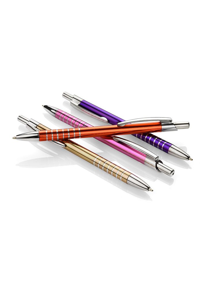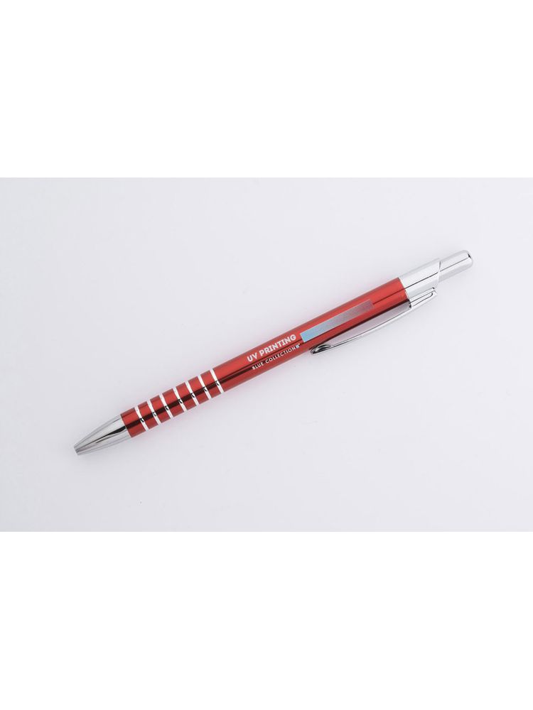 Prosty długopis wykonany z aluminium ozdobiony szerokimi ringami. Logo wygrawerujemy.