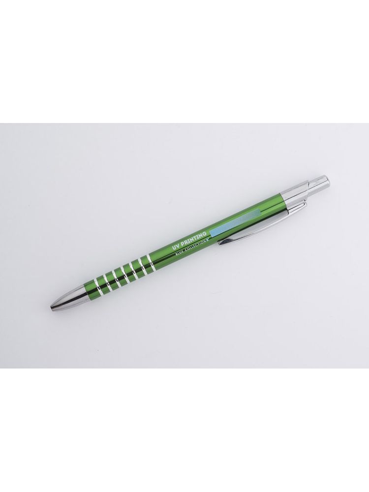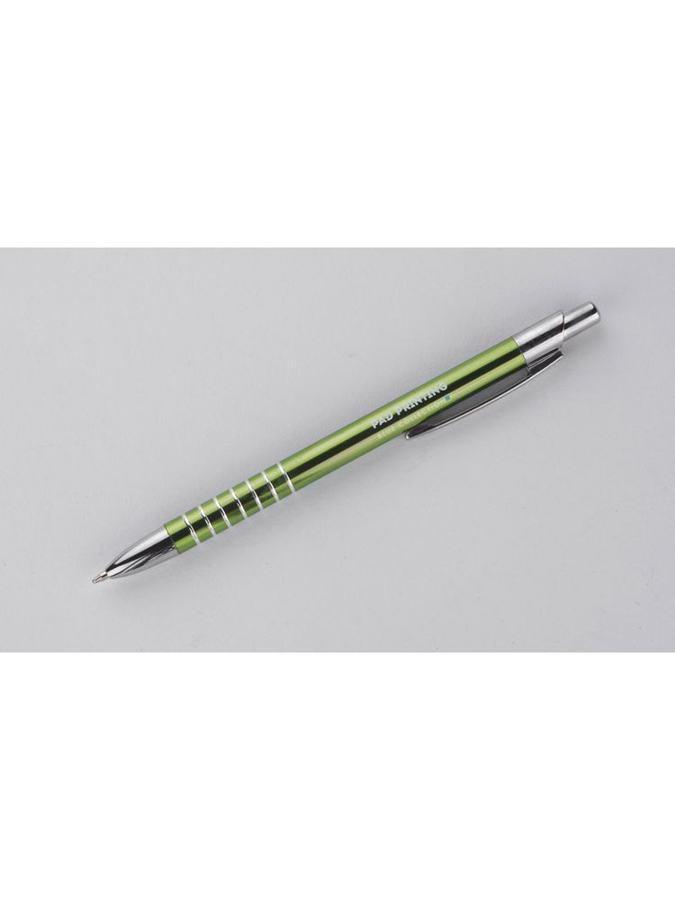 Prosty długopis wykonany z aluminium ozdobiony szerokimi ringami. Logo wygrawerujemy.