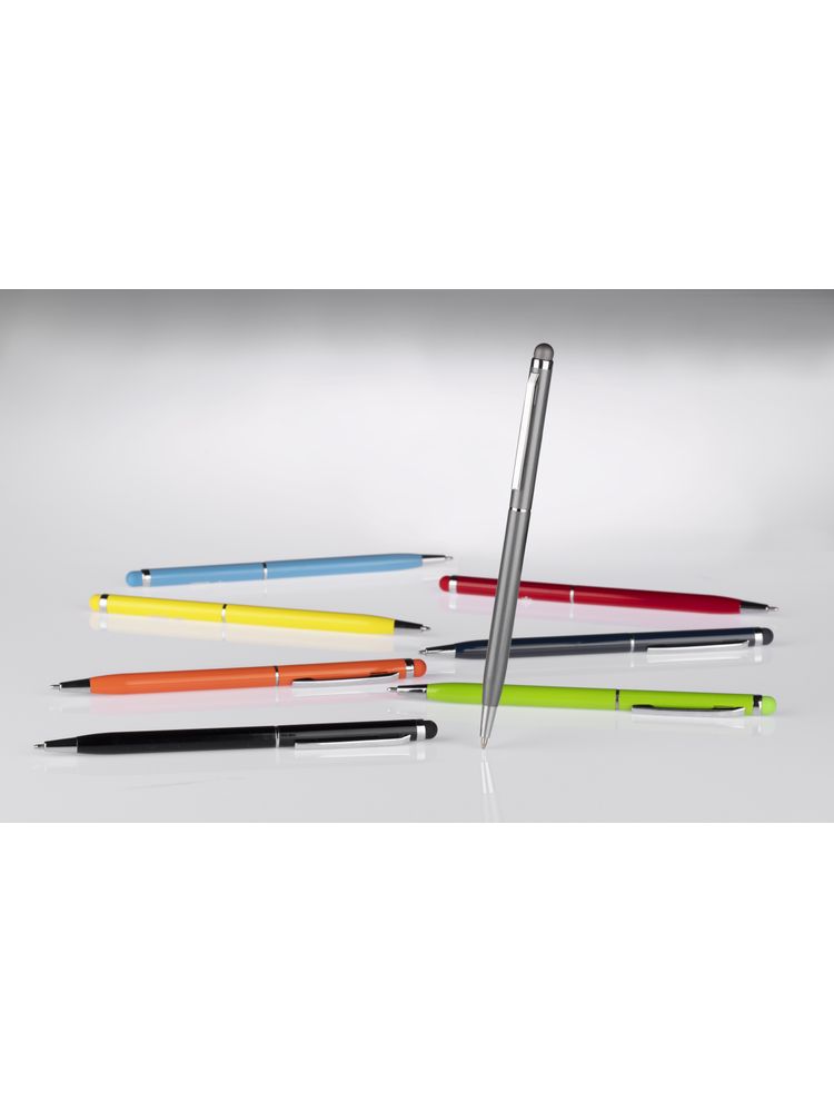 Nowa, ulepszona wersja dobrze znanego modelu. TIN 2 to cienki, metalowy długopis z kolorową końcówką do ekranów dotykowych (touch). Długopis posiada mechanizm typu ““twist”“. Wkład w kolorze niebieskim.