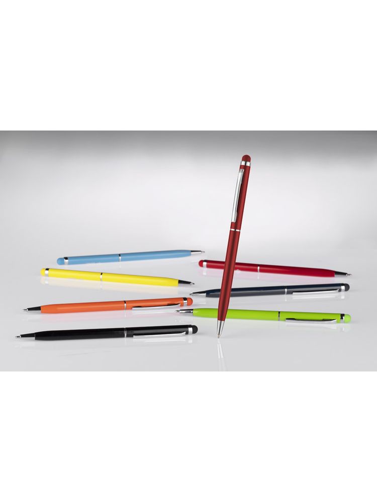 Nowa, ulepszona wersja dobrze znanego modelu. TIN 2 to cienki, metalowy długopis z kolorową końcówką do ekranów dotykowych (touch). Długopis posiada mechanizm typu ““twist”“. Wkład w kolorze niebieskim.