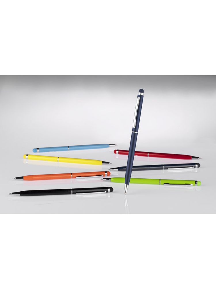 Nowa, ulepszona wersja dobrze znanego modelu. TIN 2 to cienki, metalowy długopis z kolorową końcówką do ekranów dotykowych (touch). Długopis posiada mechanizm typu ““twist”“. Wkład w kolorze niebieskim.
