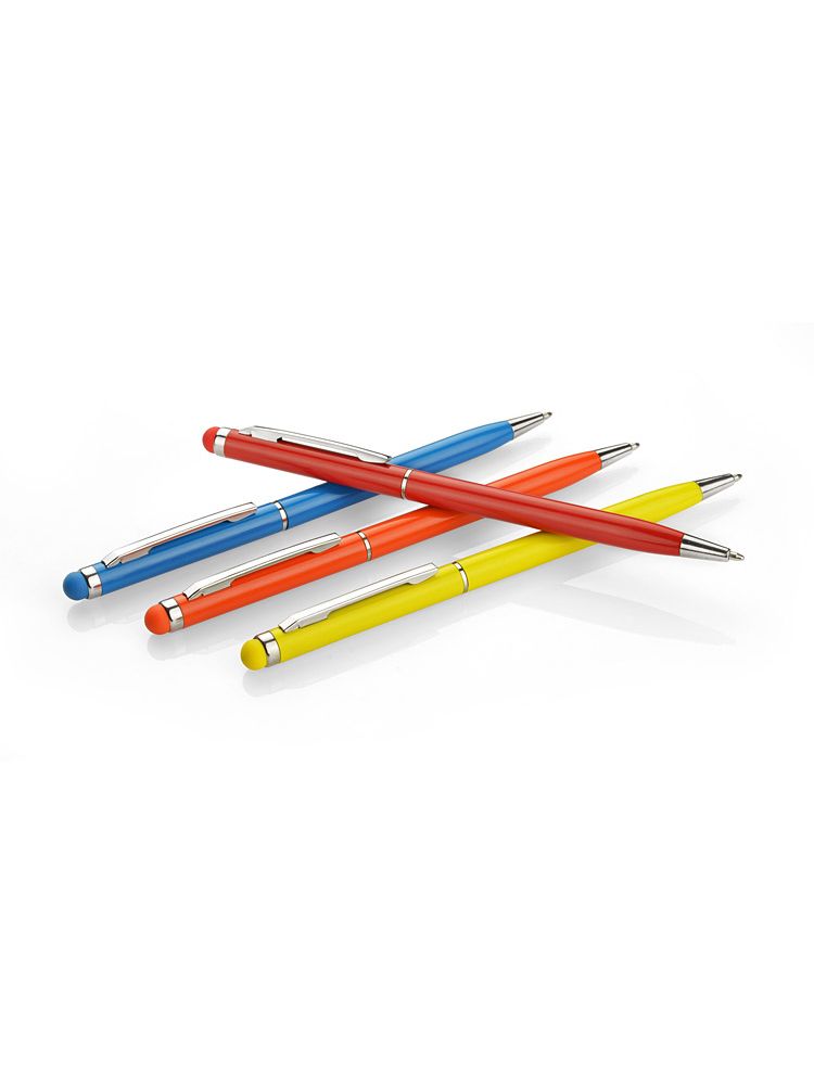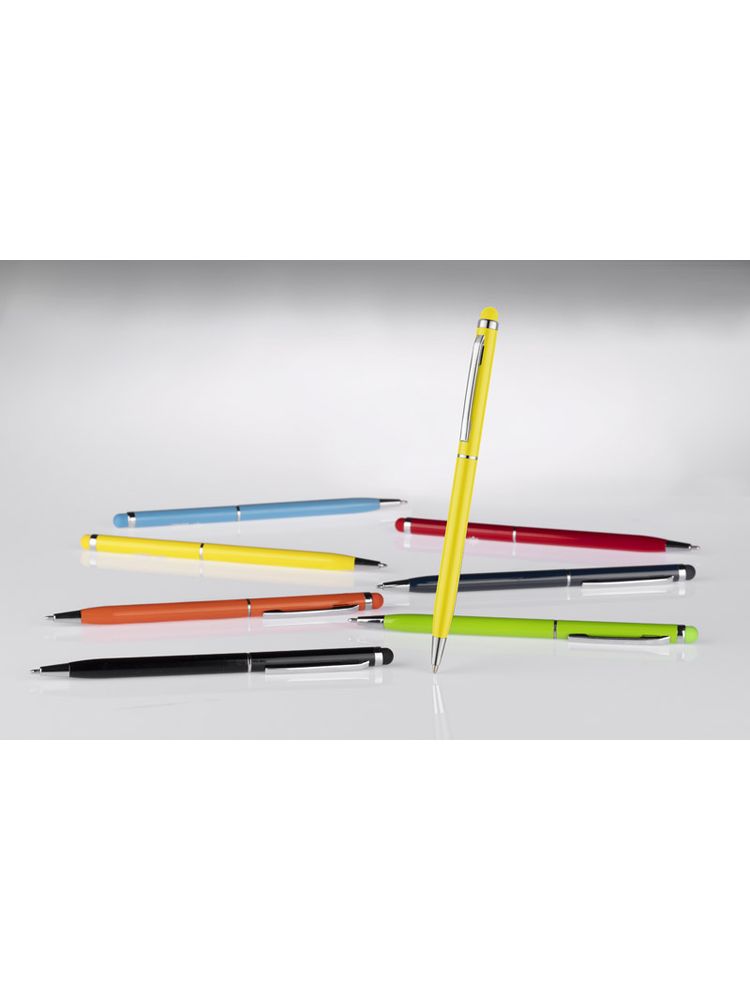 Nowa, ulepszona wersja dobrze znanego modelu. TIN 2 to cienki, metalowy długopis z kolorową końcówką do ekranów dotykowych (touch). Długopis posiada mechanizm typu ““twist”“. Wkład w kolorze niebieskim.