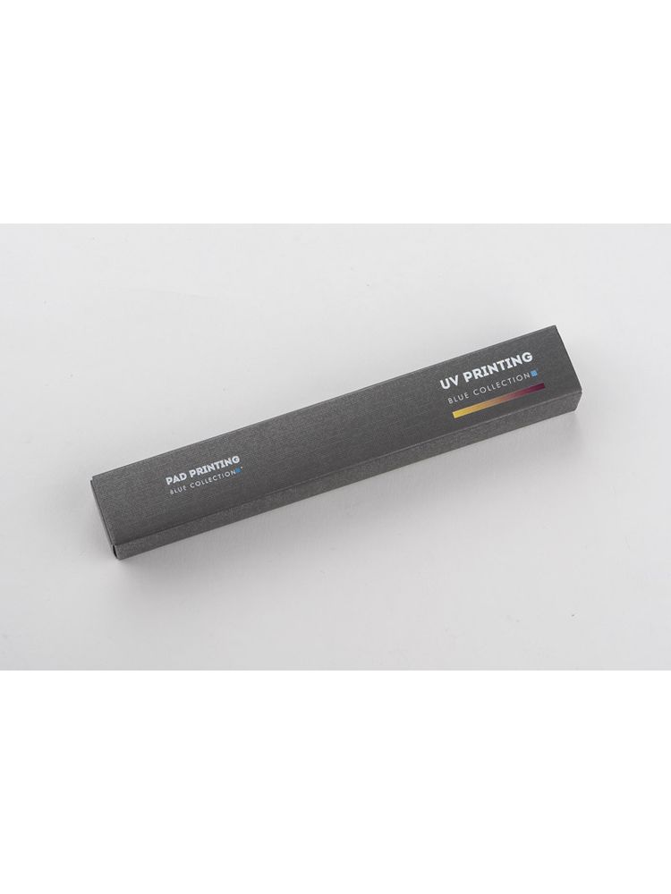 RIO to elegancki długopis zapakowany w papierowy kartonik dopasowany kolorystycznie do obudowy długopisu. Matowy kolor ładnie kontrastuje z czarnymi wykończeniami. Długopis z mechanizmem typu twist, z wkładem typu G2 w kolorze niebieskim.
