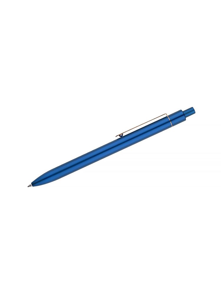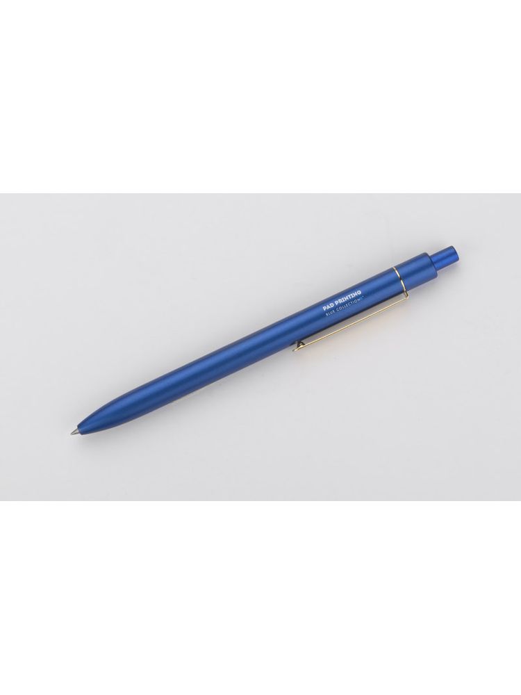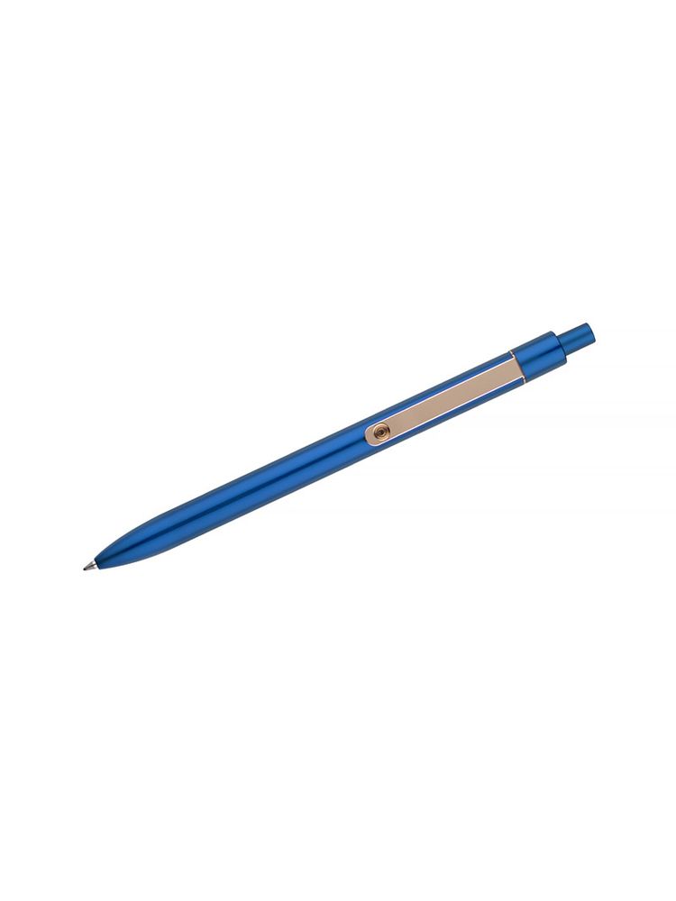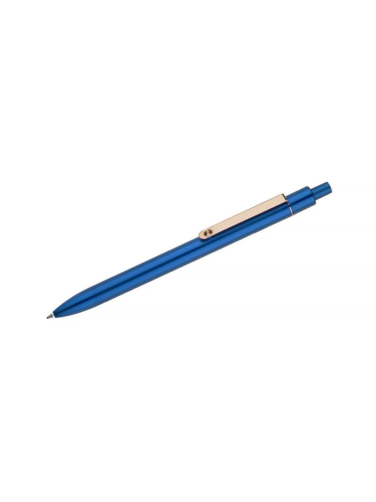 Stylowy długopis aluminiowy z matowym wykończeniem i klipem w kolorze złotym.