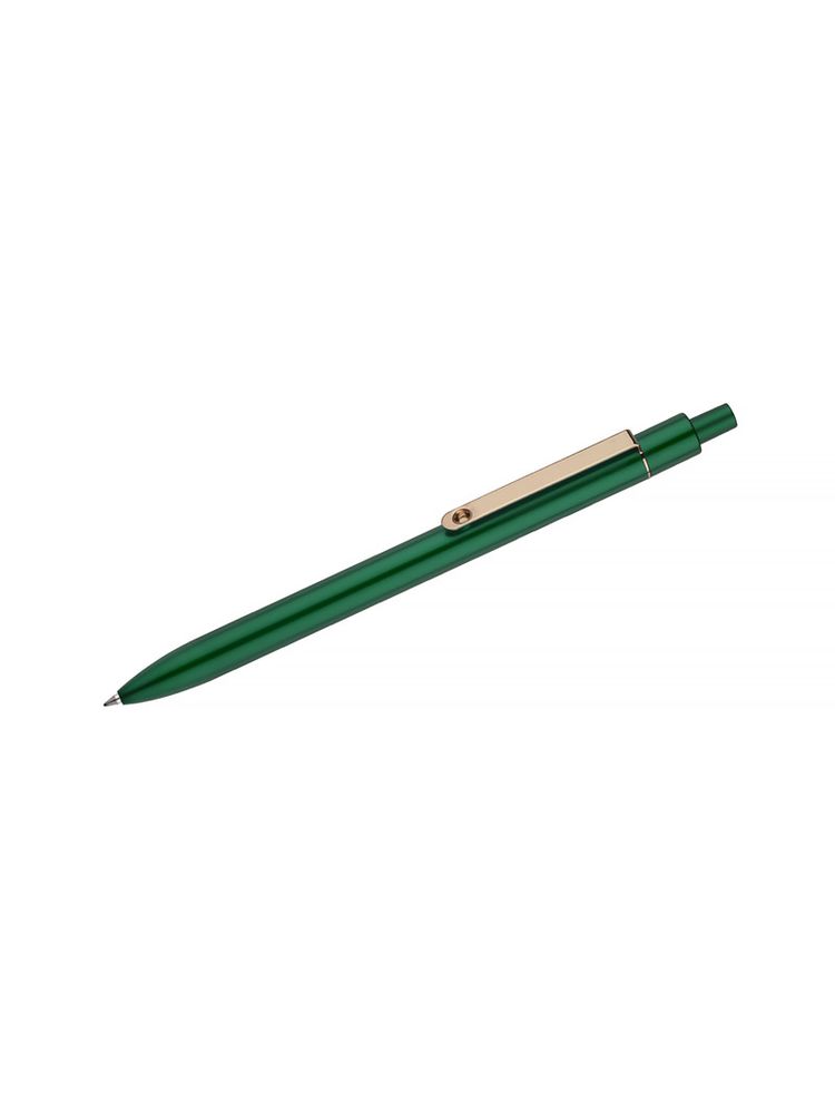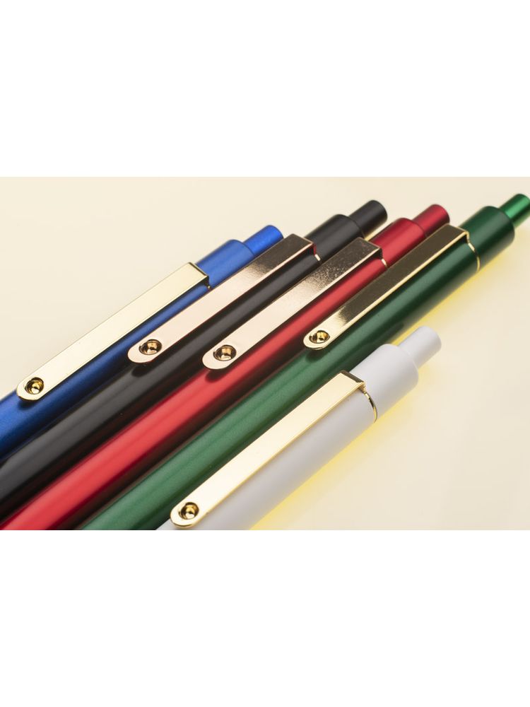 Stylowy długopis aluminiowy z matowym wykończeniem i klipem w kolorze złotym.