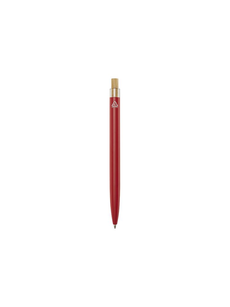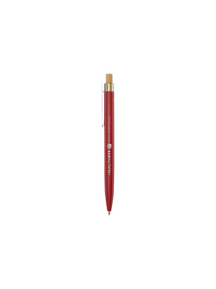Nooshin długopis wykonany z aluminium pochodzącego z recyklingu, którego produkcja wymaga mniej energii niż w przypadku aluminium wyprodukowanego z surowców. Ogranicza również ilość odpadów na wysypiskach śmieci i pomaga chronić zasoby naturalne w celu zmniejszenia emisji gazów cieplarnianych. Przycisk jest wykonany z bambusa. Kolor tuszu: Czarny. Żywotność: 800 metrów. Rozmiar stalówki: 1,00 mm.