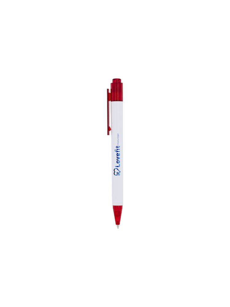 Długopis Calypso ma smukły, biały korpus i przejrzysty klips i końcówkę.
