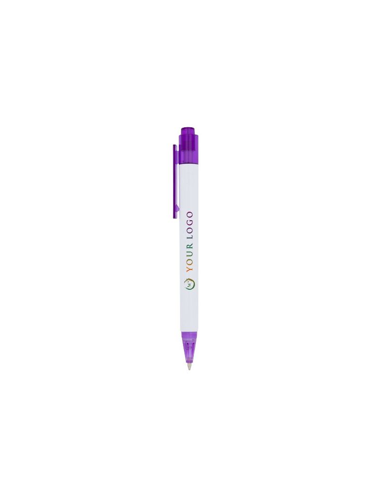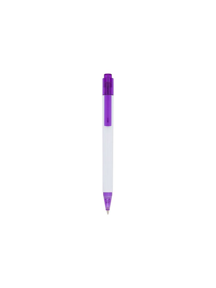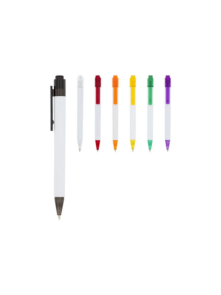 Długopis Calypso ma smukły, biały korpus i przejrzysty klips i końcówkę.