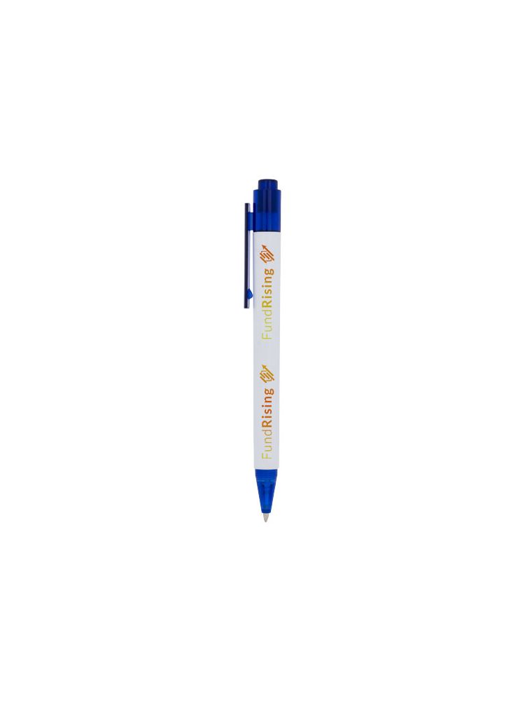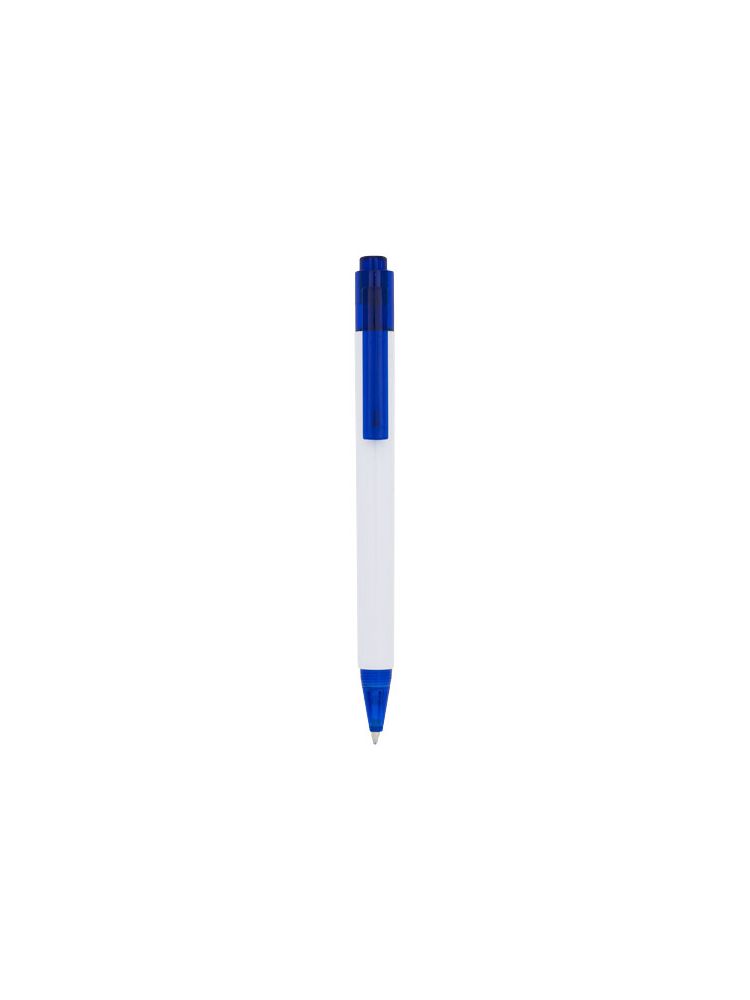 Długopis Calypso ma smukły, biały korpus i przejrzysty klips i końcówkę.
