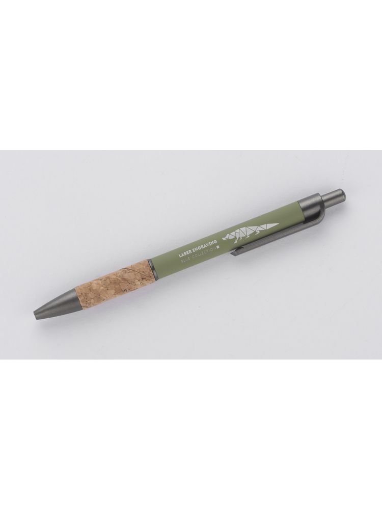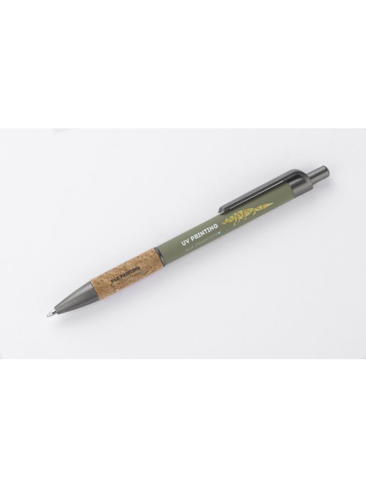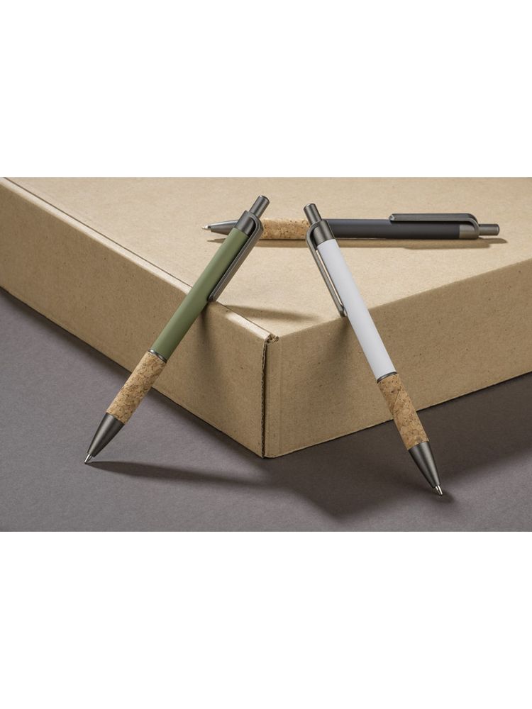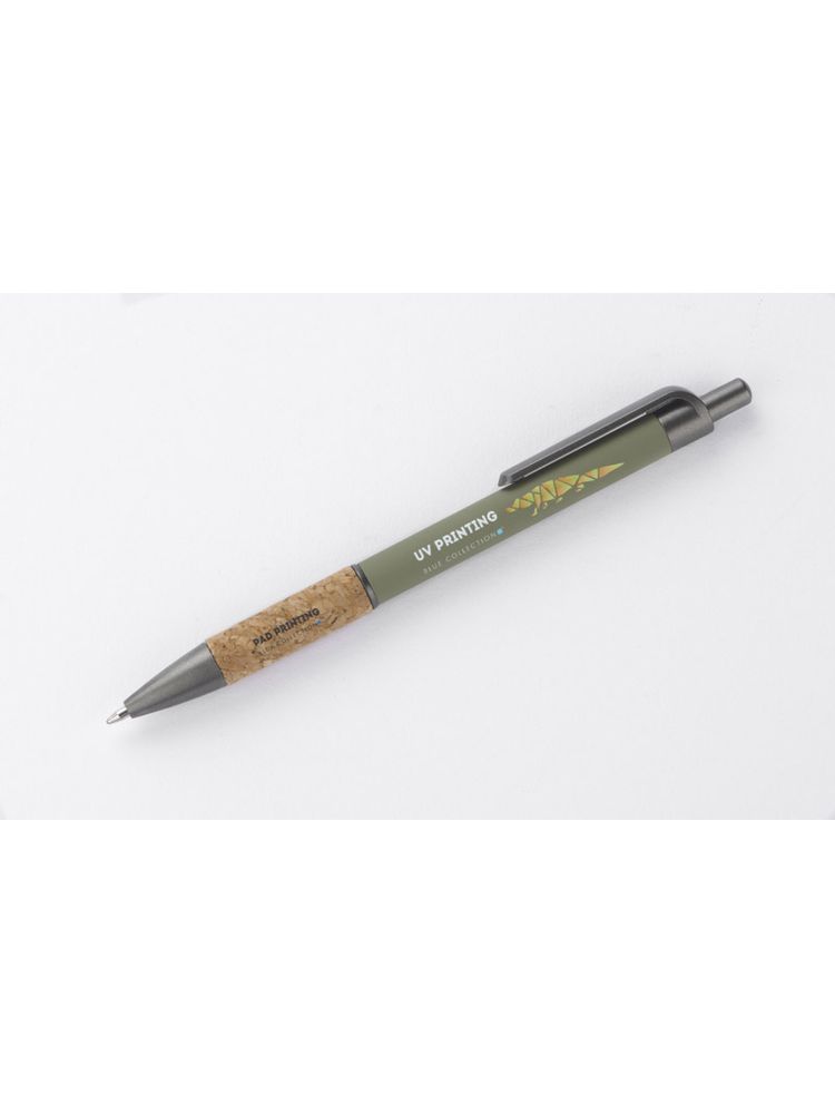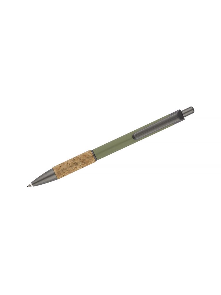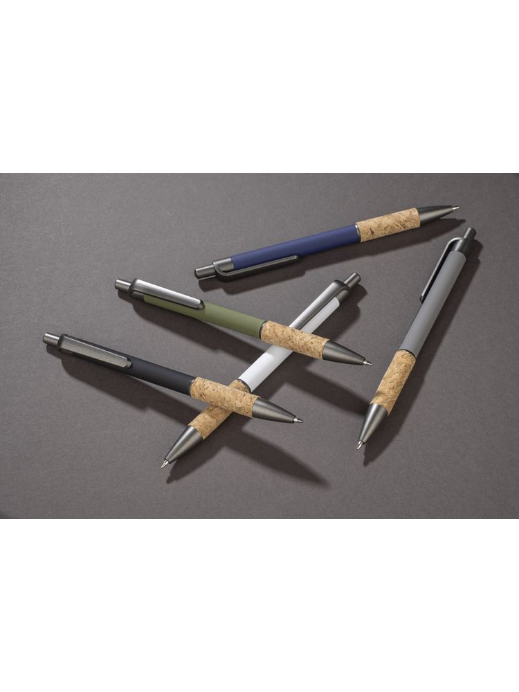 Długopis KUBOD posiada klasyczny, prosty kształt. Wykonany z aluminium pokrytego przyjemną w dotyku gumową powłoką. Uchwyt wykończony naturalnym korkiem gwarantuje wygodne trzymanie. Wykończenia w kolorze grafitowym wykonane zostały z tworzywa. Długopis automatyczny. Wkład typu X20 w kolorze niebieskim.