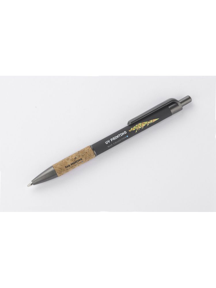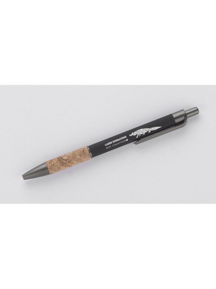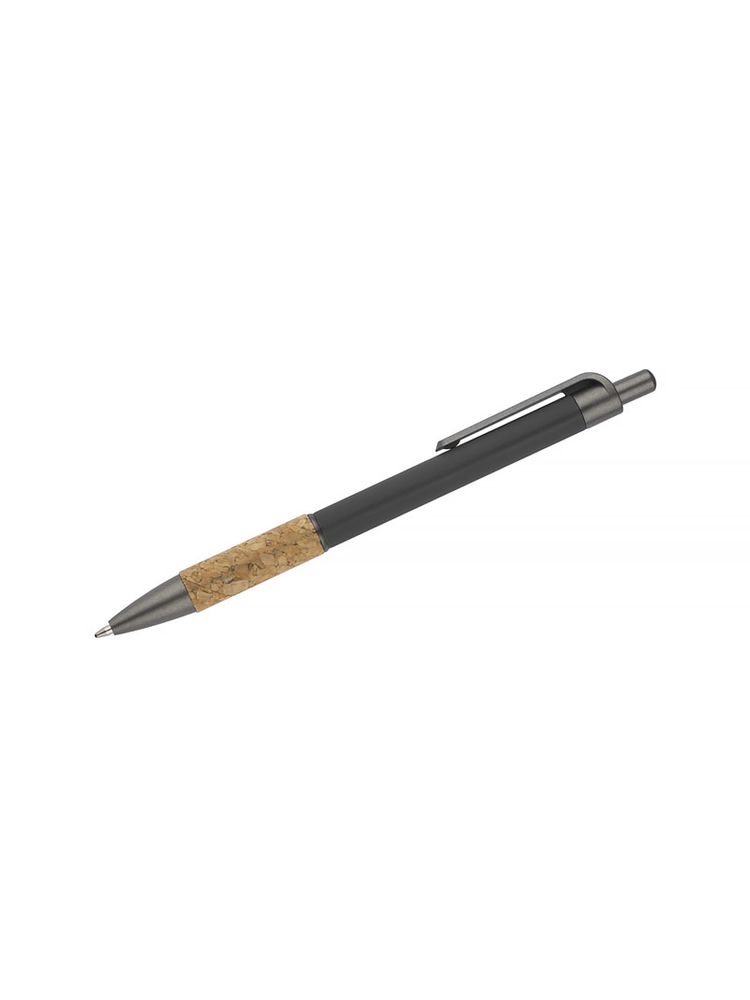 Długopis KUBOD posiada klasyczny, prosty kształt. Wykonany z aluminium pokrytego przyjemną w dotyku gumową powłoką. Uchwyt wykończony naturalnym korkiem gwarantuje wygodne trzymanie. Wykończenia w kolorze grafitowym wykonane zostały z tworzywa. Długopis automatyczny. Wkład typu X20 w kolorze niebieskim.