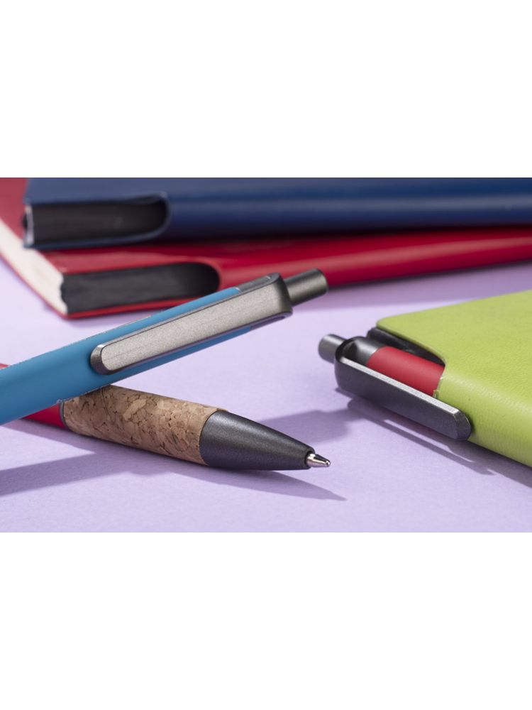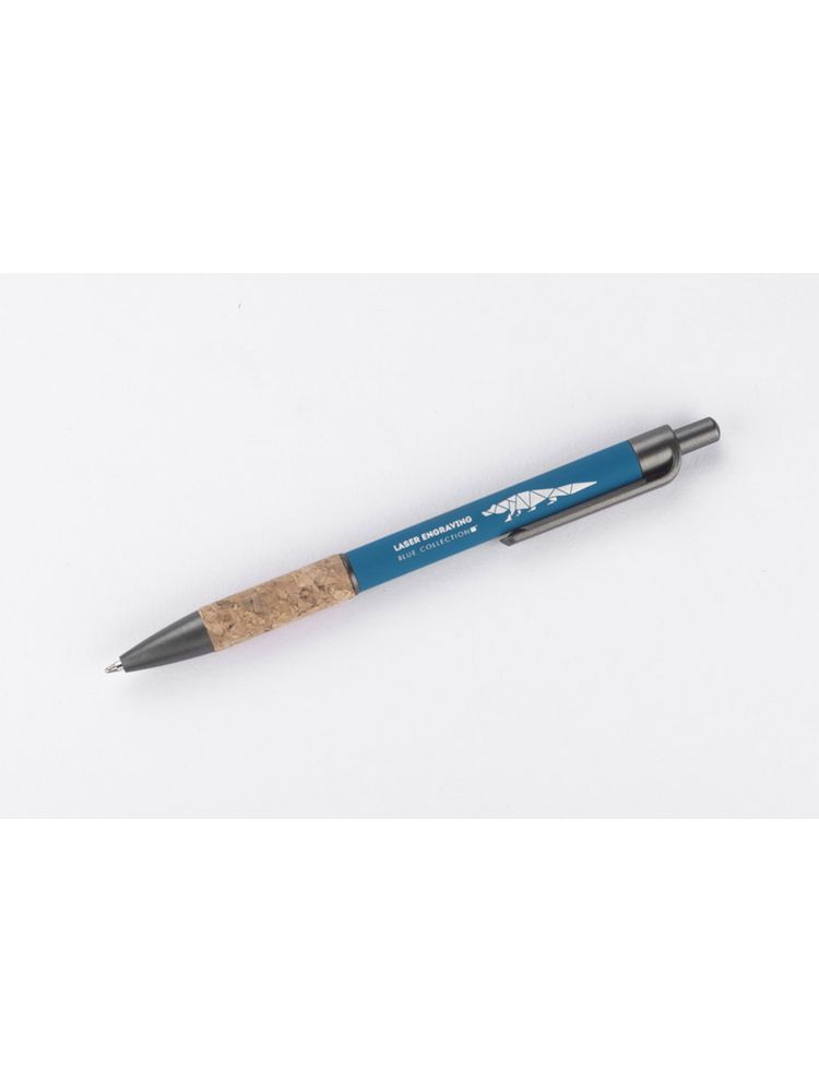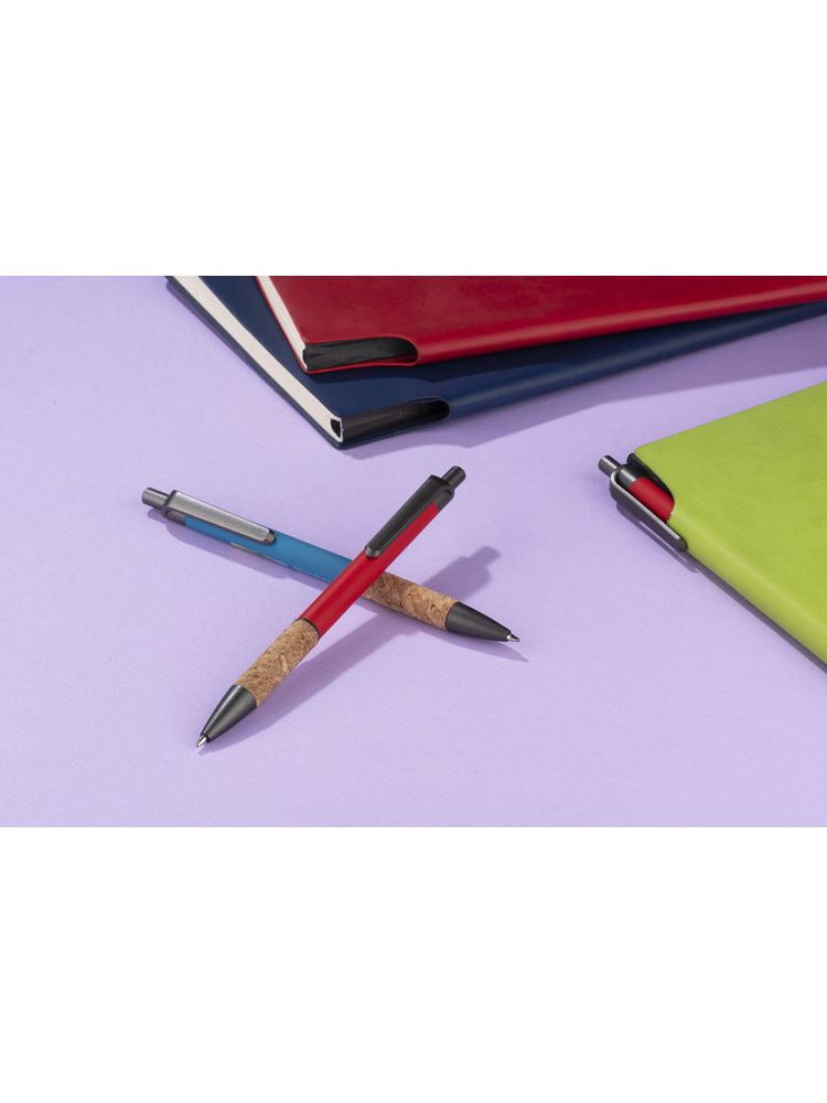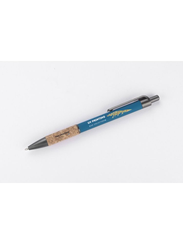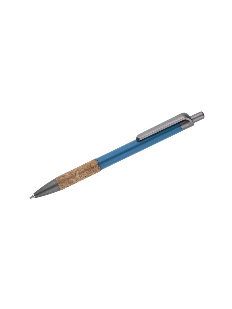 Długopis KUBOD posiada klasyczny, prosty kształt. Wykonany z aluminium pokrytego przyjemną w dotyku gumową powłoką. Uchwyt wykończony naturalnym korkiem gwarantuje wygodne trzymanie. Wykończenia w kolorze grafitowym wykonane zostały z tworzywa. Długopis automatyczny. Wkład typu X20 w kolorze niebieskim.