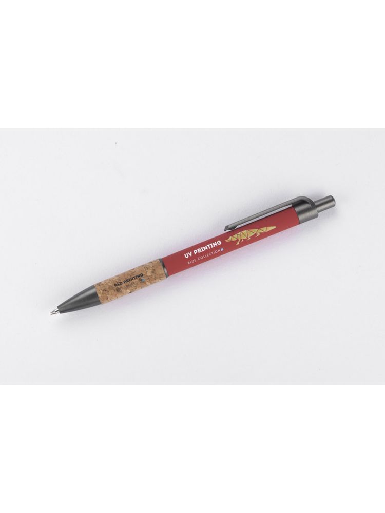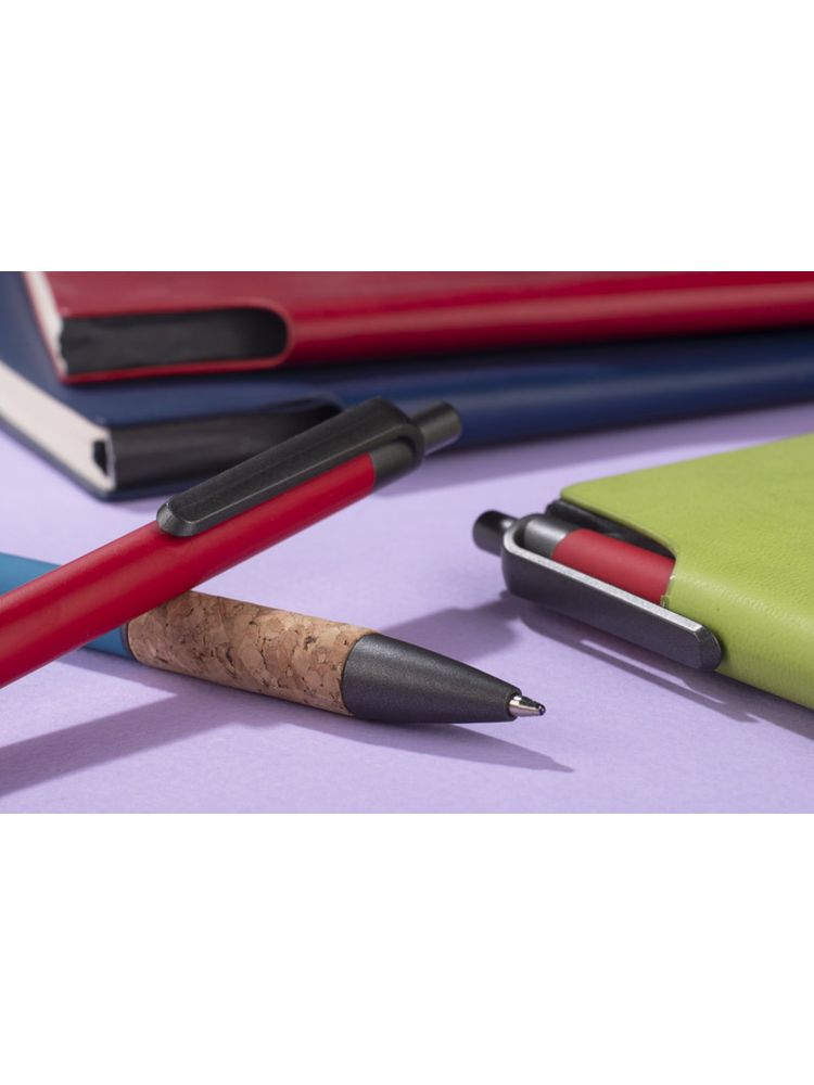 Długopis KUBOD posiada klasyczny, prosty kształt. Wykonany z aluminium pokrytego przyjemną w dotyku gumową powłoką. Uchwyt wykończony naturalnym korkiem gwarantuje wygodne trzymanie. Wykończenia w kolorze grafitowym wykonane zostały z tworzywa. Długopis automatyczny. Wkład typu X20 w kolorze niebieskim.