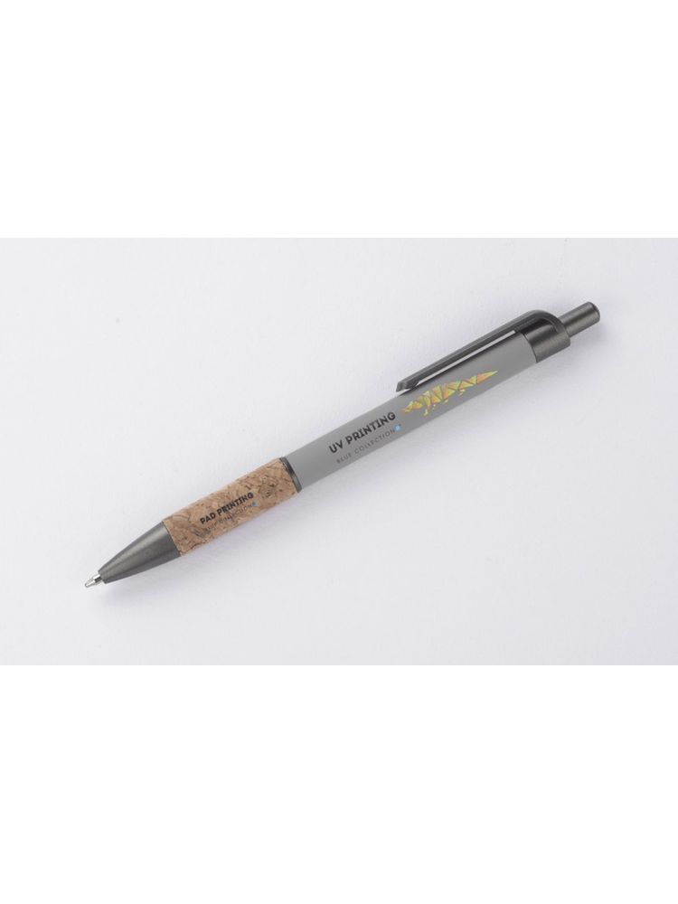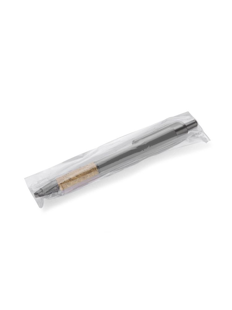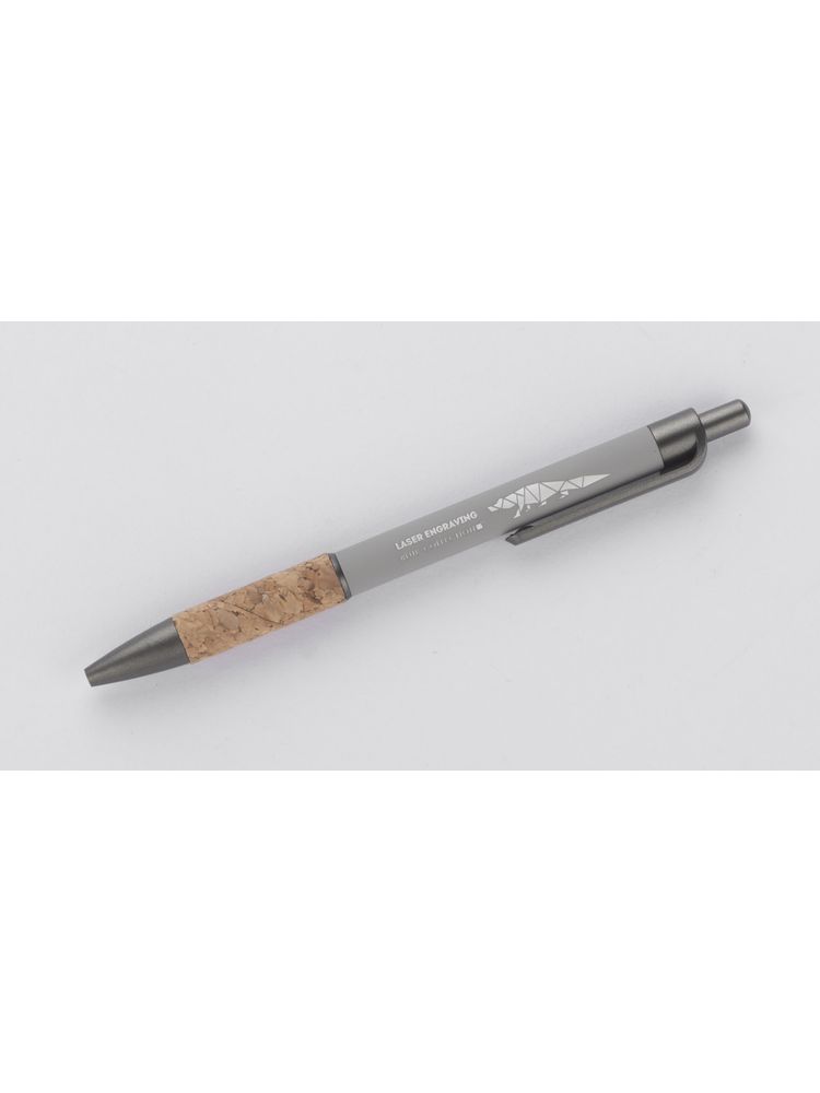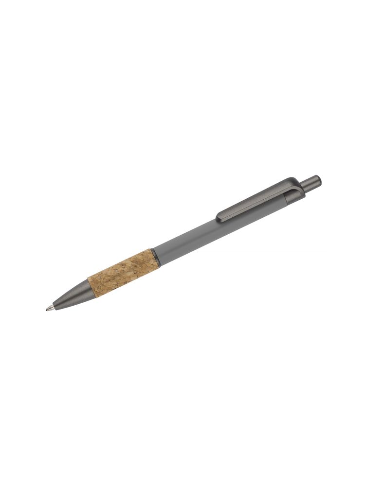 Długopis KUBOD posiada klasyczny, prosty kształt. Wykonany z aluminium pokrytego przyjemną w dotyku gumową powłoką. Uchwyt wykończony naturalnym korkiem gwarantuje wygodne trzymanie. Wykończenia w kolorze grafitowym wykonane zostały z tworzywa. Długopis automatyczny. Wkład typu X20 w kolorze niebieskim.