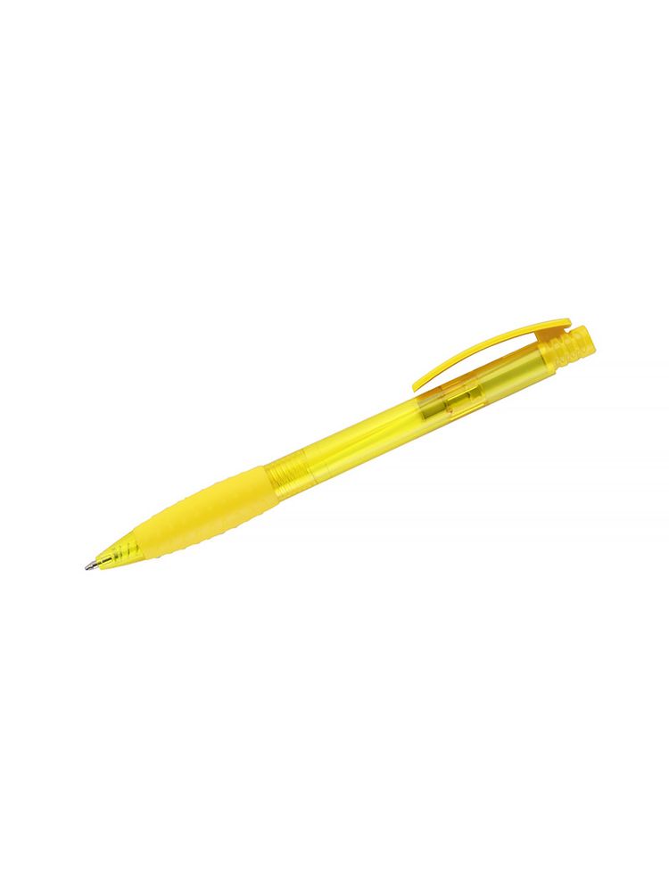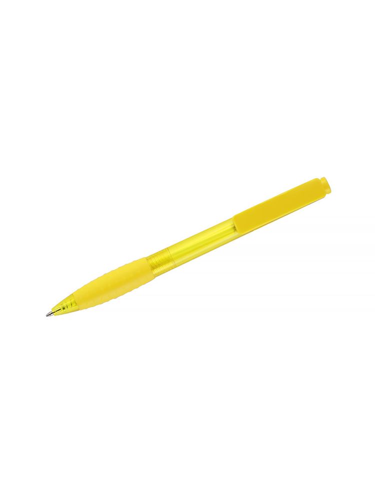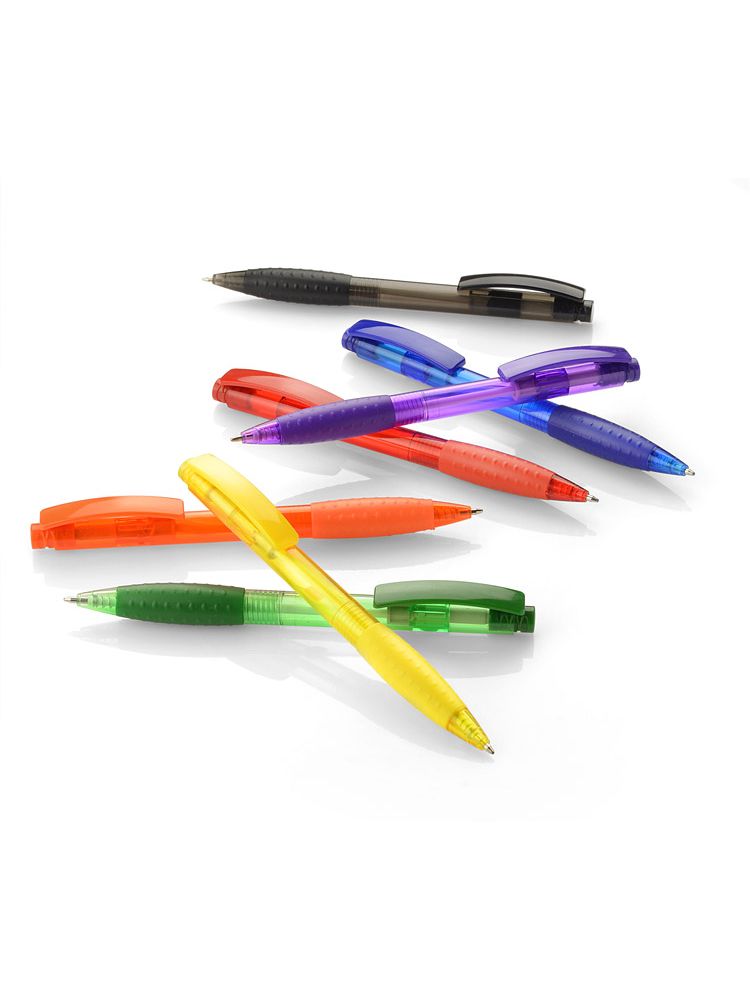 Automatyczny długopis VISION wykonany z plastiku, z gumką na korpusie ułatwiającą trzymanie. Długopis jest z niebieskim wkładem. Nadruk logo zrobimy na korpusie długopisu.