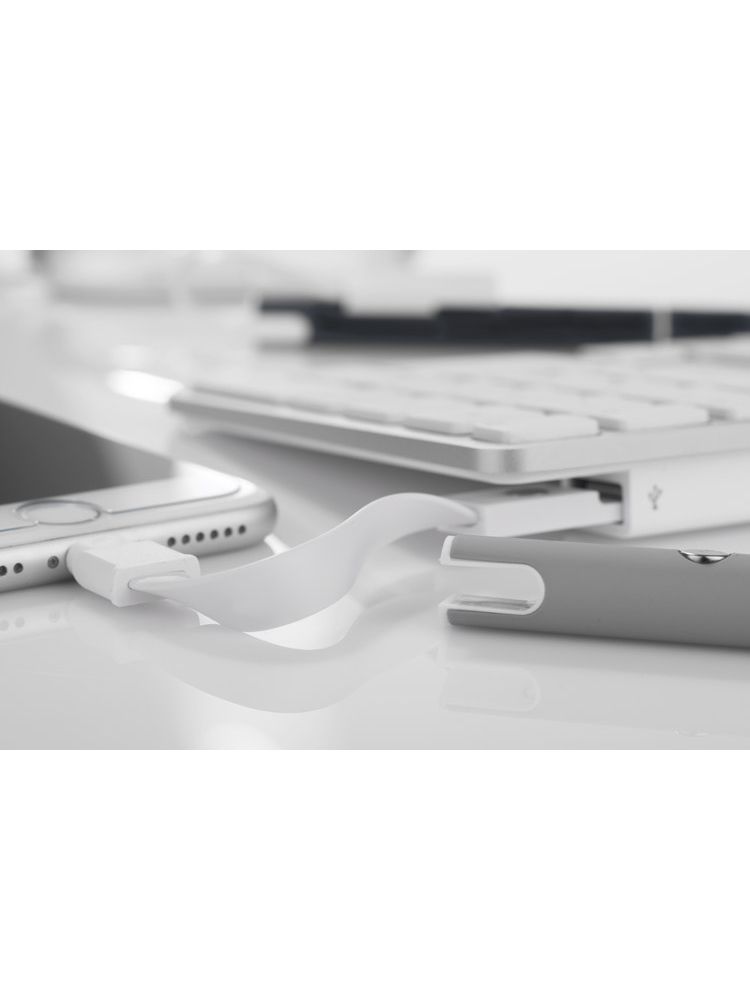 Długopis CHARGE to idealna opcja dla tych, którzy często gubią kable do ładowania. Jego klip został wykonany ze sprytnie umocowanego na magnes kabla służącego do ładowania urządzeń mobilnych oraz do przesyłania danych. Kabel z wtyczką uniwersalną 2 w 1: microUSB oraz typu IPhone. Długopis w całości wykonany z metalu o gumowanej powierzchni. Mechanizm włączający typu twist. Wkład o grubości 1.0 mm w kolorze niebieskim.