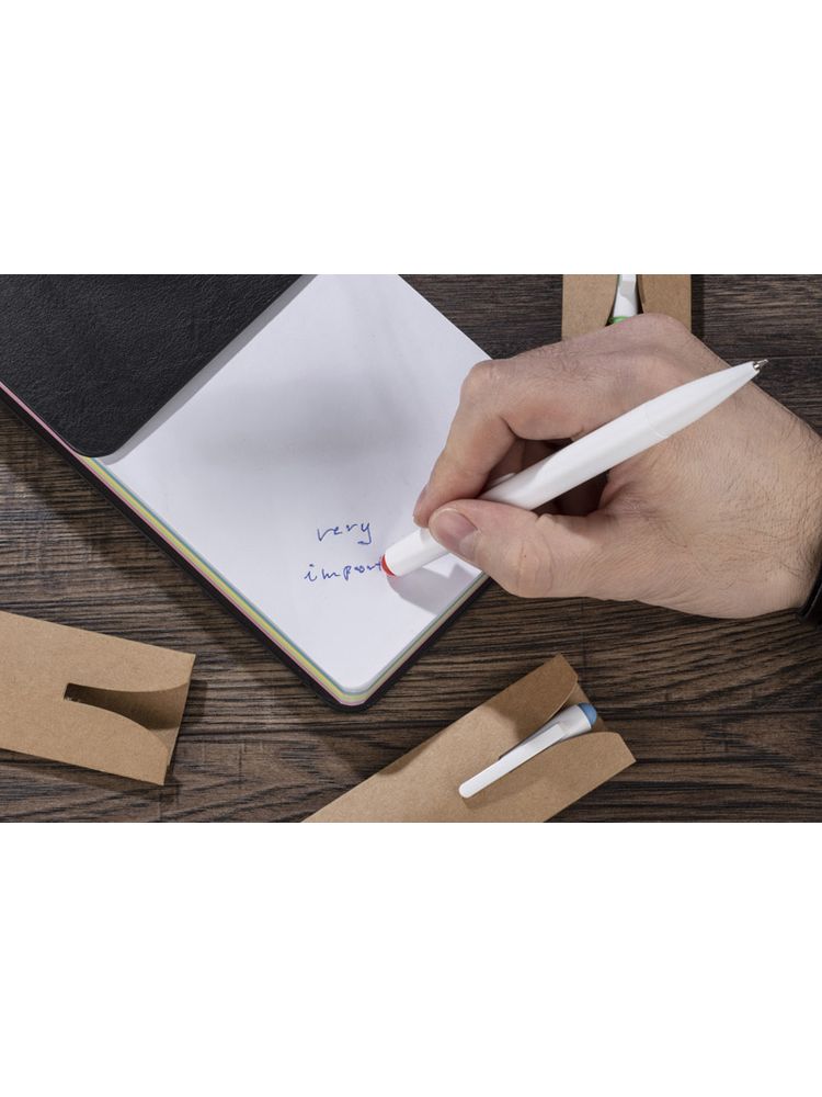 Długopis pozwalający na korektę wszystkich błędów to wymarzony gadżet dla uczniów. Specjalny wkład pozwala na zmazanie napisanego tekstu za pomocą gumki umieszczonej na górze długopisu. MAZZI wykonany jest z tworzywa w białym kolorze z kolorowymi akcentami. Zapakowany w estetyczne etui z papieru. Długopis automatyczny, wkład w kolorze niebieskim.