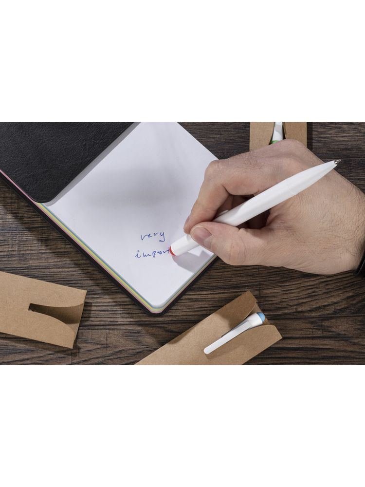 Długopis pozwalający na korektę wszystkich błędów to wymarzony gadżet dla uczniów. Specjalny wkład pozwala na zmazanie napisanego tekstu za pomocą gumki umieszczonej na górze długopisu. MAZZI wykonany jest z tworzywa w białym kolorze z kolorowymi akcentami. Zapakowany w estetyczne etui z papieru. Długopis automatyczny, wkład w kolorze niebieskim.