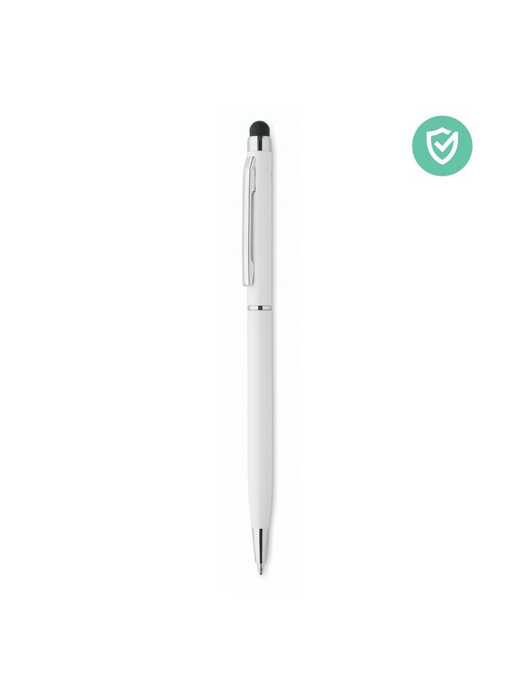 Aluminiowy przekręcany długopis z antybakteryjnym korpusem i błyszczącym chromowanym klipsem. ISO 22196. Tusz niebieski.