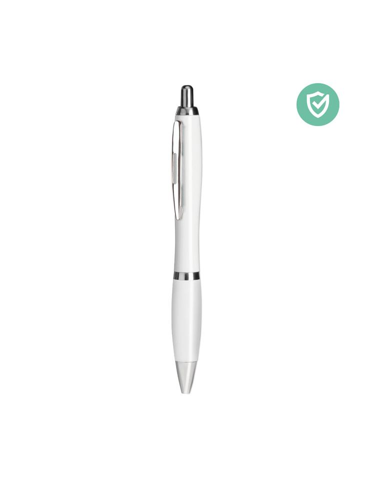 Długopis z przyciskiem z ABS z tubą antybakteryjną. Zawiera specjalny dodatek (nanosrebro), który zapobiega kolonizacji bakterii na powierzchni. ISO 22196. Niebieski tusz.