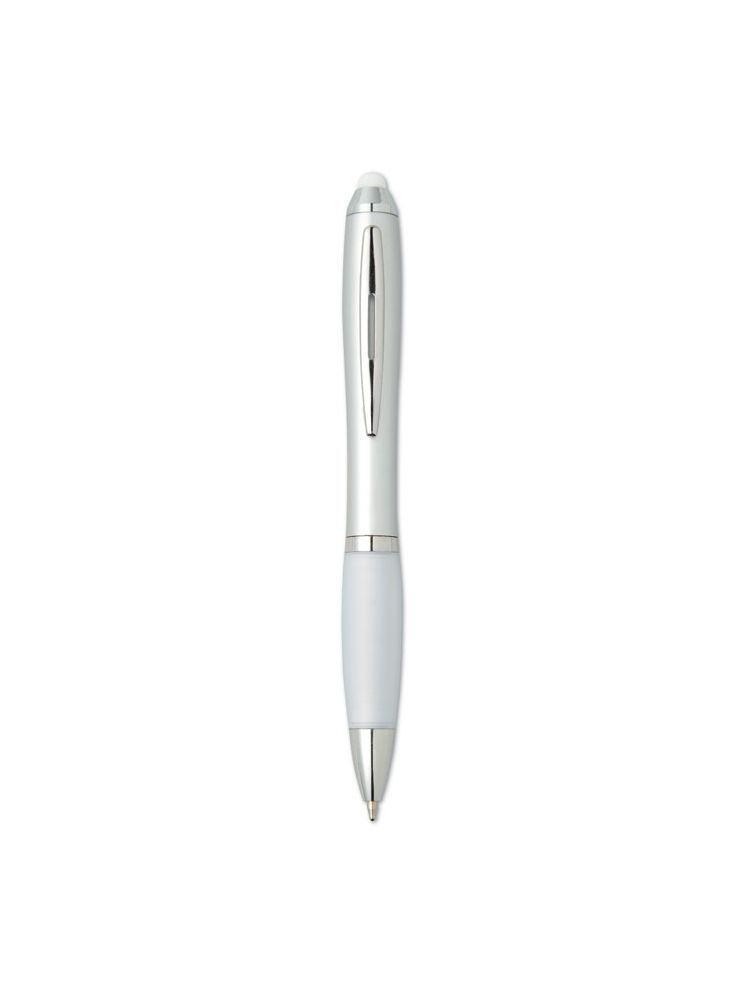 Plastikowy, przekręcany długopis z gumowanym uchwytem i kolorystycznie dobraną miękką końcówką. Niebieski wkład.