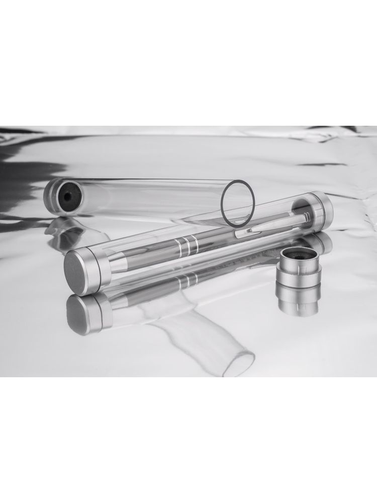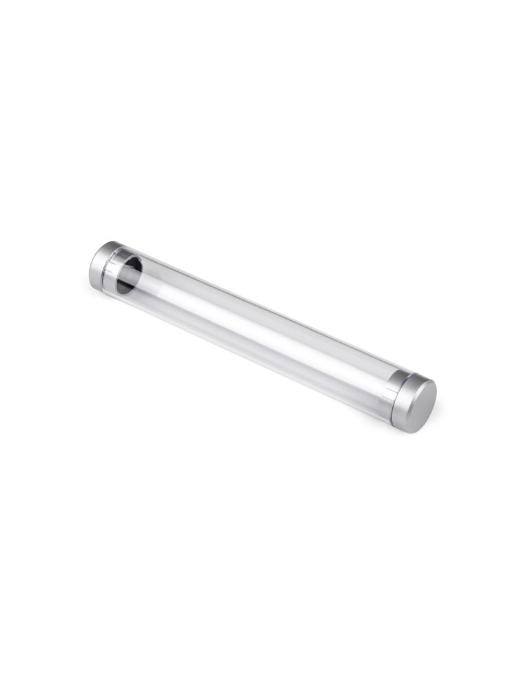 Etui z tworzywa sztucznego w kształcie rurki na jeden artykuł piśmienniczy. Pasuje do długopisów o wysokości od 130 do 143 mm.